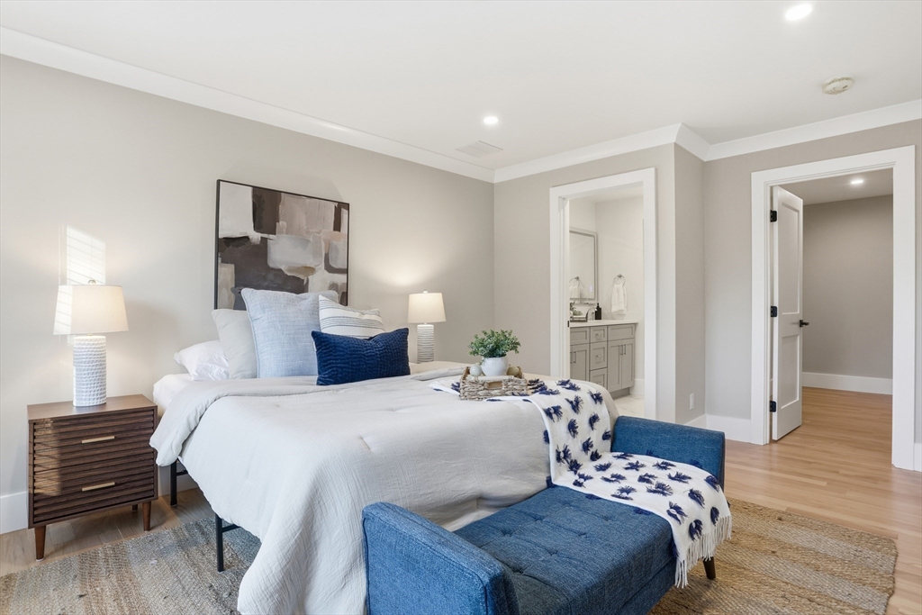 Experience the art of modern living in these custom-crafted townhomes, located in the heart of Bedford Center! These are well designed with today’s lifestyle in mind. From top-tier construction to impeccable attention to detail, these homes offer an expansive and elegantly appointed living space that exudes timeless beauty. Featuring hardwood floors throughout, Anderson Black Windows both inside and out, and 9-foot ceilings on the main floor, every corner reflects craftsmanship and quality. Enjoy the warmth and ambiance created by designer electric fireplaces, and a custom white kitchen with high-end GE Café appliances, stunning quartz countertops, and a center island.The primary bath is a sanctuary, featuring a frameless glass shower, porcelain tile shower, backsplash, plus double vanities with quartz countertops and premium Kohler fixtures.The lower level will be plumbed for a full bathroom and can be custom finished as an option. Constructed by one of the best builders in the area!