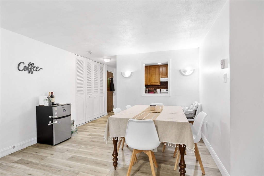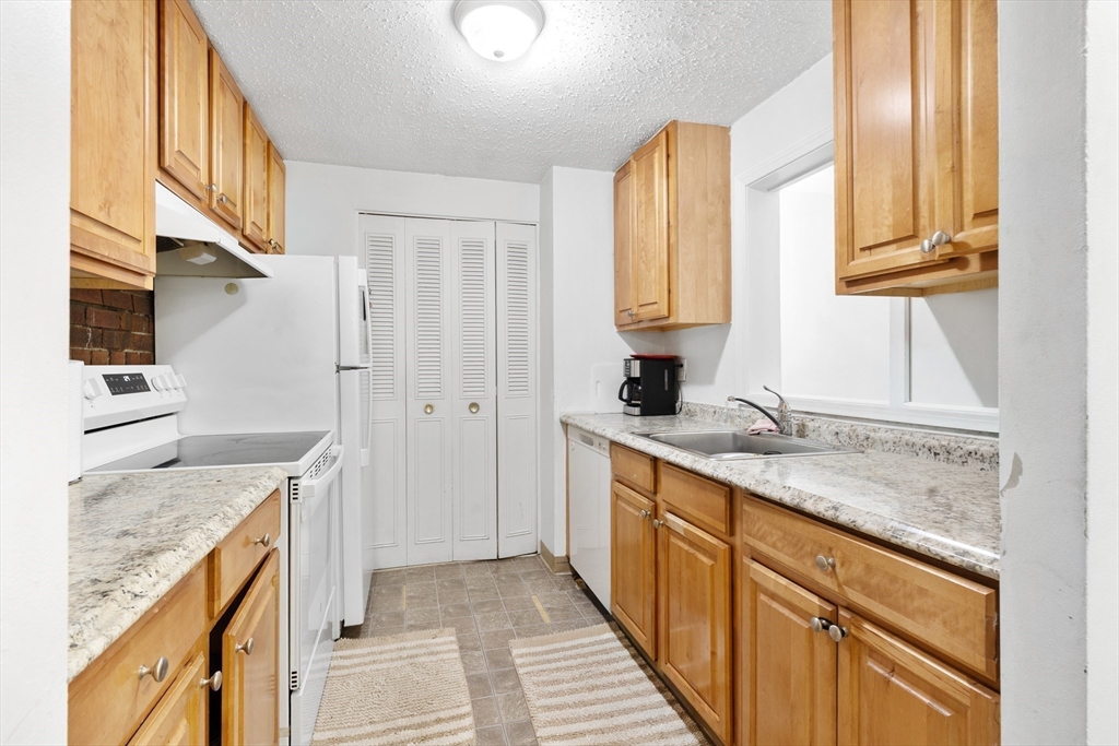 This approximately 910 square foot condominium features two bedrooms and one and a half bathrooms. The primary bedroom offers ample space with a large window providing natural light. The second bedroom is a comfortable size suitable for a variety of uses. The living area offers an open floor plan, allowing for flexibility in furnishing and layout. The unit has an updated kitchen cabinets, countertops, appliances and laminate flooring throughout. This is a very well run complex in a convenient area close to commuter rail, highway, dining, hospital and so much more. On site management, plenty of parking, plenty of closets & spacious rooms. Beautiful grounds for a stroll, enjoy the pool, tennis, or play area. This property is ready for showings.