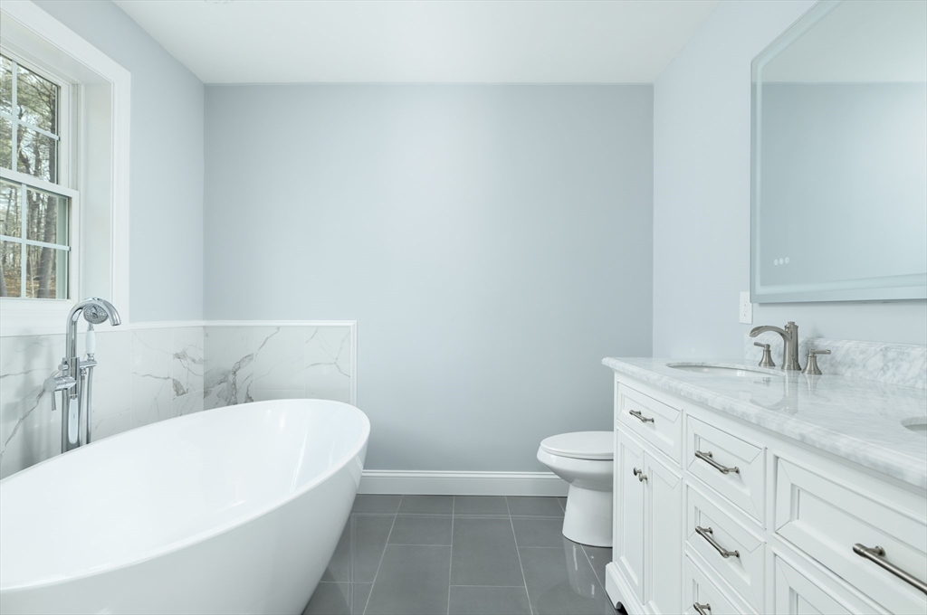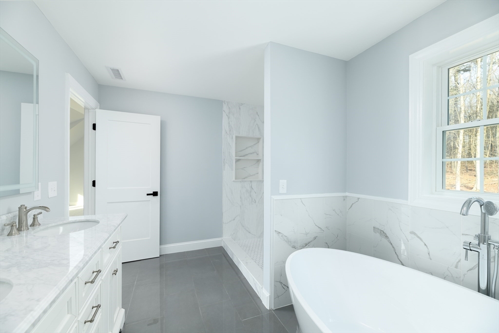 Welcome to the exquisite newly built home stately positioned on an 1.76 acre lot offering seasonal water views of Greenwood Pond . Interior boasts luxury construction with grand foyer entrance, 9’ ceilings on 1st floor , hardwood floors and everyone’s dream kitchen featuring shaker style white cabinetry with soft close features, crown molding , granite counters, tile backsplash, center island with ample seating space plus an informal dining area. Open to front to back LR with fireplace and slider to composite deck , formal dining room is accented with woodworking details including wainscoting and chair rail . Open staircase bring you to the 2nd floor where you will find the laundry rm, 4 bdrms inc primary suite with a true wall of closet space, cathedral ceilings, private bath with tile shower, soaking tub and double vanity. All bathrms have tile floors & marble countertops. Celebrate the new year in your NEW home