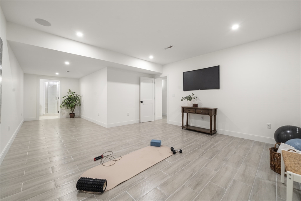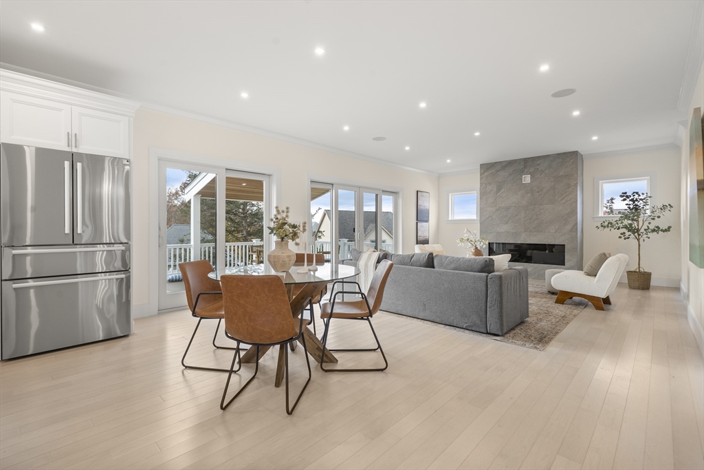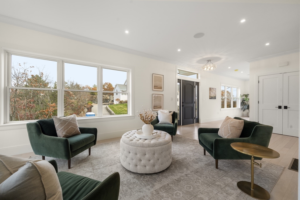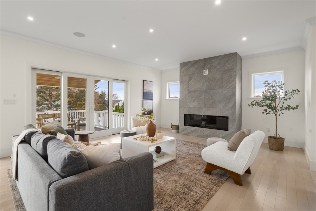 EXCEPTIONAL NEW CONSTRUCTION.This 5BR, 4.5BA Colonial pairs refined contemporary design with subtle zen influences in a prime Melrose location near Main St, Rte 1 & Orange Line access.Thoughtfully laid out with every square foot maximized.The showpiece kitchen features a 48” Bosch induction range, jumbo white quartz island, custom wet bar with beverage center, generous dining area and sliders to a covered deck.Oak floors, custom staircase with wrought-iron railings, 9’ ceilings, fireplaced living room, formal dining, den and powder room define the main level.The lower level offers an oversized 3-bay garage with epoxy floors, EV charging, mudroom with custom built-ins and a finished studio with private ¾ bath.Second floor includes 4 bedrooms, laundry and walk-in storage.Finished third floor boasts a stunning bath, bedroom, office area and giant bonus room with sweeping Boston views.Wired with a 14-speaker, 7-zone indoor/outdoor sound system. This is a special property and sure to WOW!