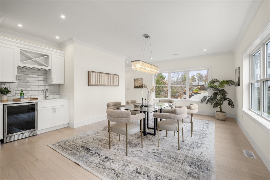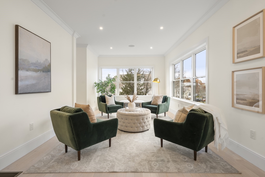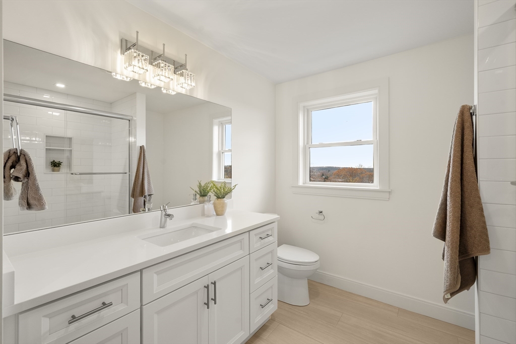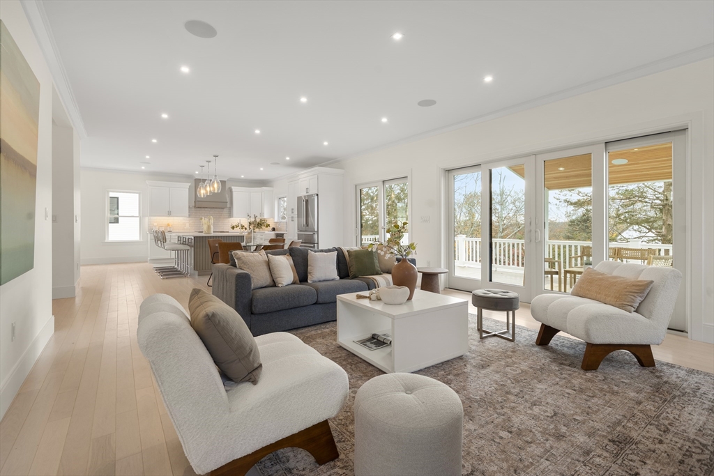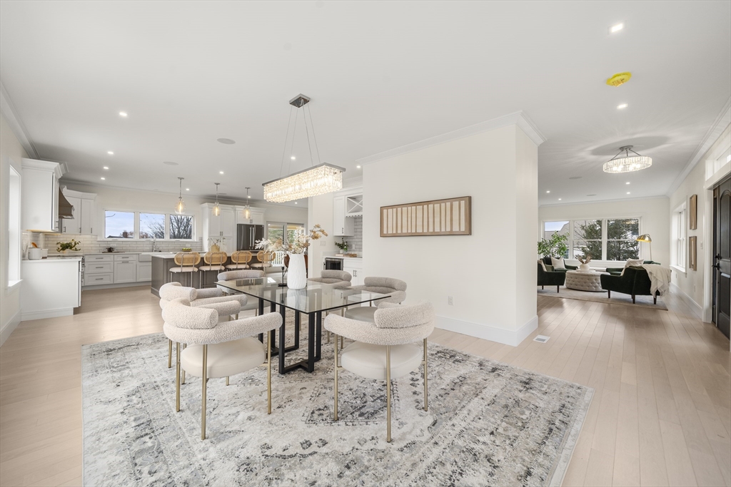 EXCEPTIONAL NEW CONSTRUCTION.This 5BR, 4.5BA Colonial pairs refined contemporary design with subtle zen influences in a prime Melrose location near Main St, Rte 1 & Orange Line access.Thoughtfully laid out with every square foot maximized.The showpiece kitchen features a 48” Bosch induction range, jumbo white quartz island, custom wet bar with beverage center, generous dining area and sliders to a covered deck.Oak floors, custom staircase with wrought-iron railings, 9’ ceilings, fireplaced living room, formal dining, den and powder room define the main level.The lower level offers an oversized 3-bay garage with epoxy floors, EV charging, mudroom with custom built-ins and a finished studio with private ¾ bath.Second floor includes 4 bedrooms, laundry and walk-in storage.Finished third floor boasts a stunning bath, bedroom, office area and giant bonus room with sweeping Boston views.Wired with a 14-speaker, 7-zone indoor/outdoor sound system. This is a special property and sure to WOW!
