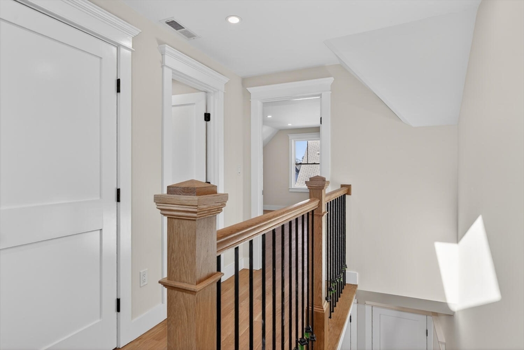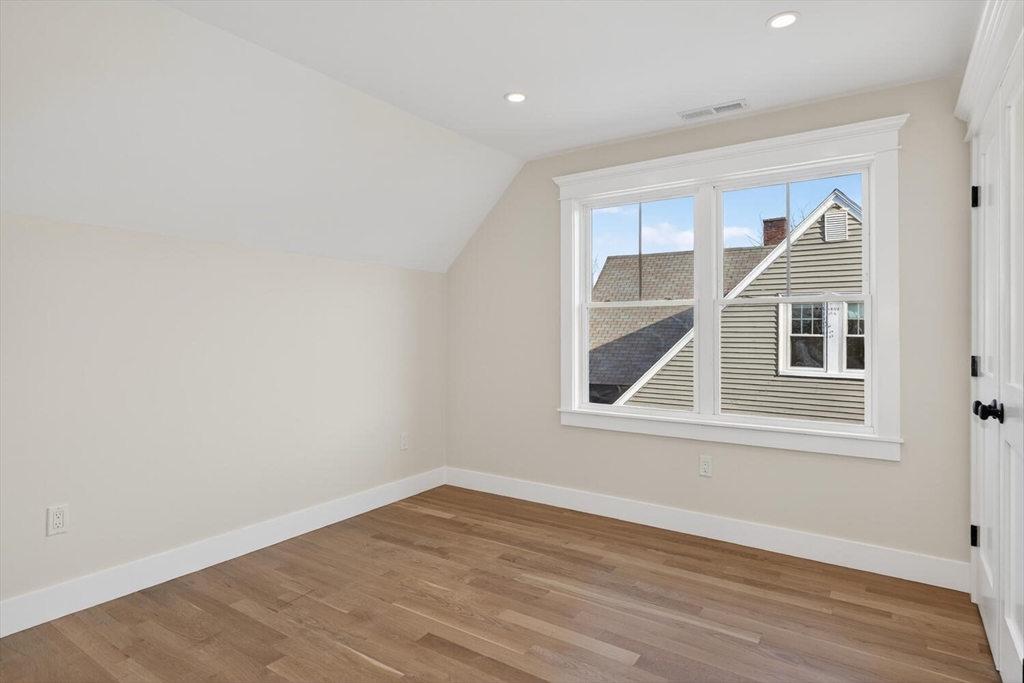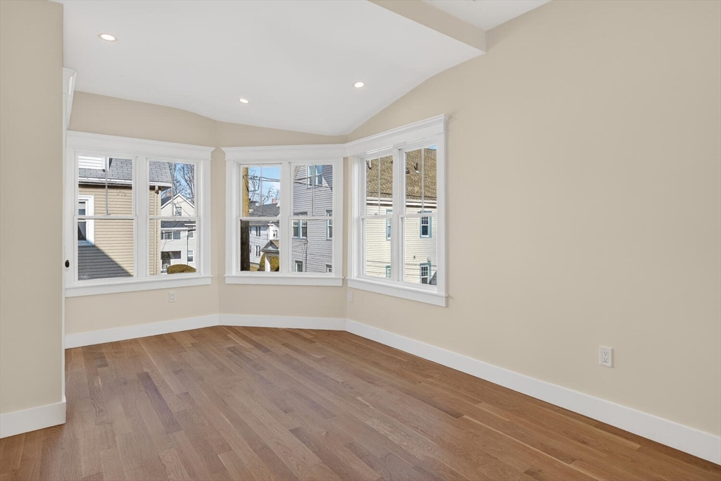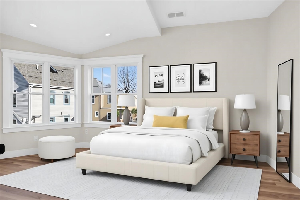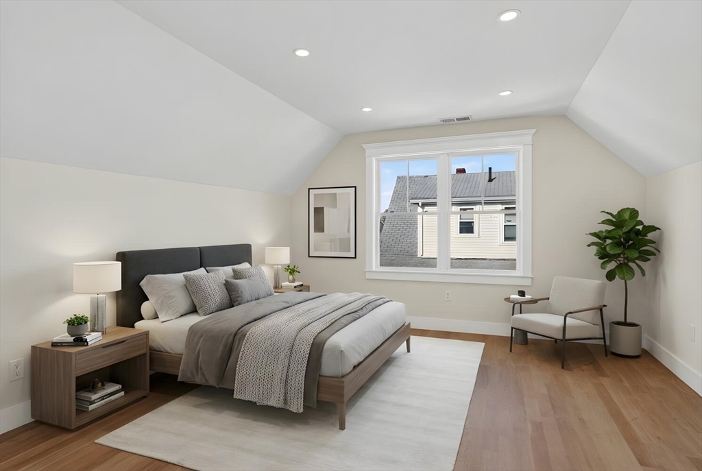 Luxurious, gut renovated two-family condominium located on a small terrace. This unit offers a modern layout with flexible living spaces. The second floor features a beautiful primary suite with large closet and a beautiful tiled bath with walk-in shower, sunlit living room with an electric fireplace, seamlessly integrated dining area and kitchen, creating a warm and open atmosphere. The spacious kitchen offers an impressive amount of cabinetry for storage and organization, beautiful countertops along with a large island that enhances interaction and functionality. The third floor includes two bright bedrooms, both with large closets, as well as a full bath and a laundry area. This is an excellent use of space, perfect for those seeking a modern home combined with old world charm in a convenient location. Ideally located with easy access to the Mass Pike (I-90), close to the Charles River and its scenic trails, as well as public transp. (Express bus to Boston!) and shopping.
