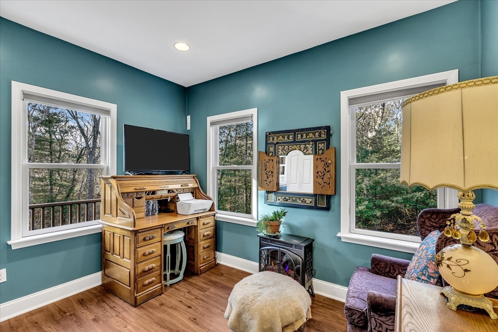Welcome to this inviting 3-bed, 2.5-bath home offering comfort, character, and an exceptional N. Falmouth location. The sun-filled living room is a true focal point, featuring dramatic floor-to-ceiling stonework and a gas fireplace that adds warmth and visual appeal. The kitchen and dining area flow seamlessly and provide excellent storage for everyday living and entertaining. 1st-floor laundry leads to a convenient home office. An oversized garage offers exceptional storage, including space ideal for winter boat storage. The cozy finished basement features distinctive red brick and rough-cut wood finishes with a custom built-in bar. Set on a property that includes and abuts protected land, the home enjoys a peaceful natural backdrop and rare privacy. Easy access to the Shining Sea Bikeway, a short bike ride to Old Silver Beach, and a quick stroll to North Falmouth Elementary School complete this desirable offering.