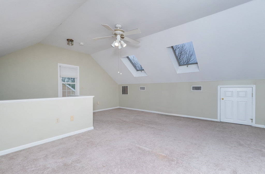 This light-filled, three-story end unit condo in the Whittier Meadows community has so much to offer. The minute you walk through the front door you are greeted by expansive open space featuring a living room with bay window, a wood-burning fireplace, a dining area and hardwood floors leading to the kitchen. The chef in the family will love the elegant kitchen with ample cabinetry, tile backsplash, granite counter tops and stainless-steel appliances. Upstairs, the spacious primary BR has double closets and a 3/4 bath. A large 2nd BR and another full bath complete the second floor. The third-floor loft offers many options from a third bedroom, entertainment area, hobby workspace or office to name a few. There is an attached one car garage and a deck for those summer grilling days. .Newer hot water heater. Just a little over a mile to downtown Amesbury with its shops and restaurants and convenient to Newburyport and beaches. Open houses Sat Jan 17 and Sun Jan 18th from 11am-12:30 pm