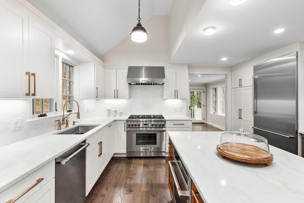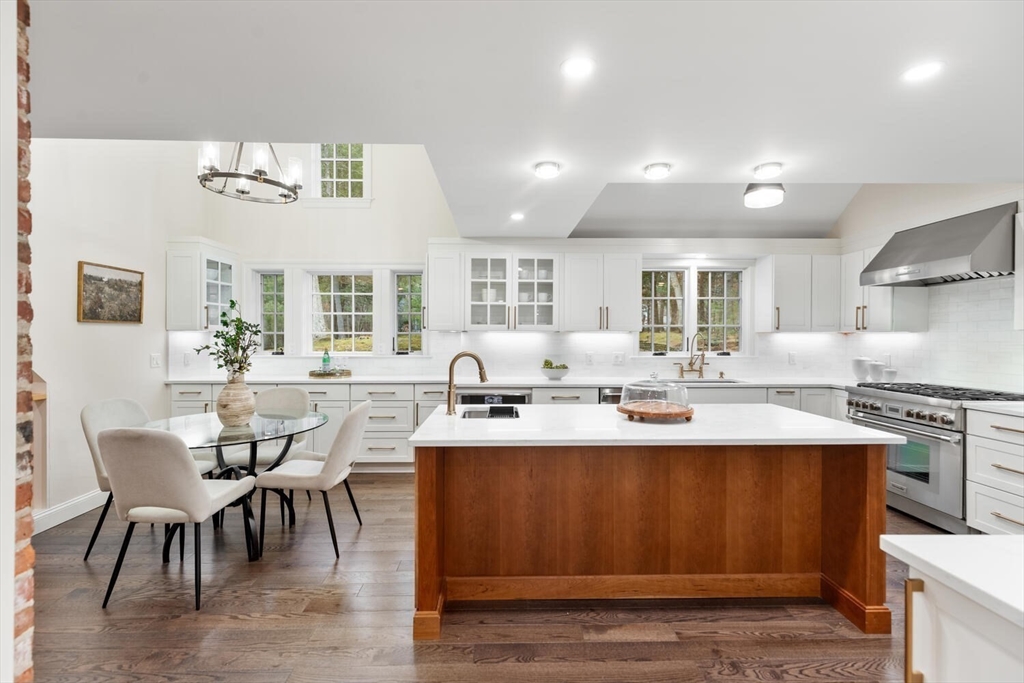 Extensively renovated & expanded Cape set on 3+ acres in highly desirable Weston neighborhood. 4,300+ sf of living space - inc. 4 Beds, 2 Offices, & 4.5 Baths - this home offers luxury & livability. Oversized windows, skylights, & French doors fill the home w/ natural light while 3 fireplaces add warmth & charm. Chef’s Kitchen w/ vaulted ceiling, oversized island, wine chiller, & brick-accented breakfast area w/ fireplace. Main-level Primary Suite has vaulted ceiling, walk-in closet, & luxe en-suite Bath. Open Living & Dining Rooms perfect for gatherings; Office w/ custom built-ins, and Powder Room w/laundry closet completes the 1st Floor. En-suite Bedroom & new Study upstairs. Walk-out LL offers add’l private Bedroom Suite, 2nd Family Room, and bonus Laundry Room. Fenced-in yard w/ in-ground pool and stone patio. Exceptional location just down the street from a ball field and minutes to parks, restaurants, trails and top-rated schools.