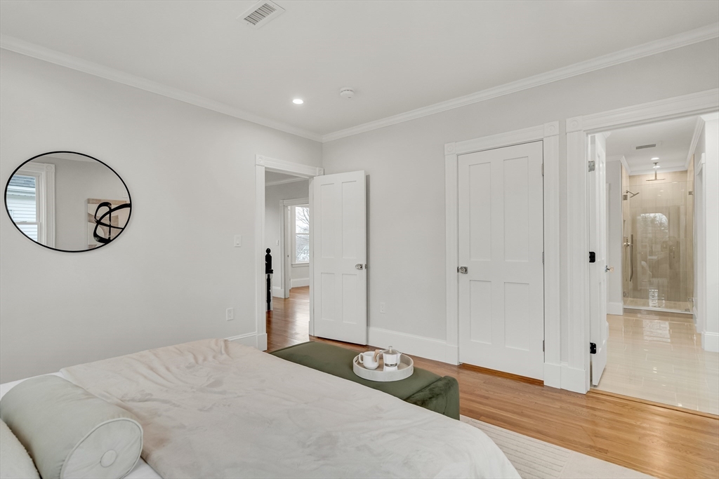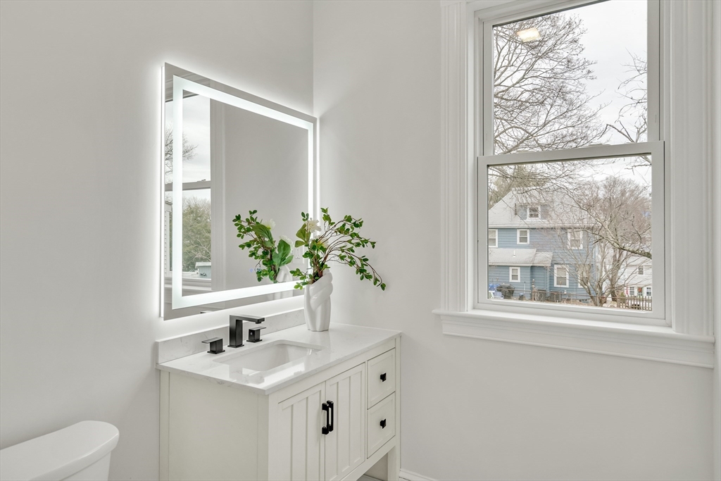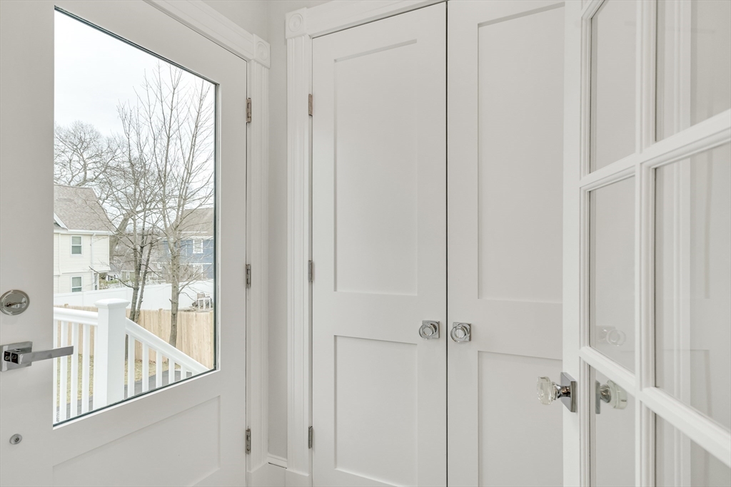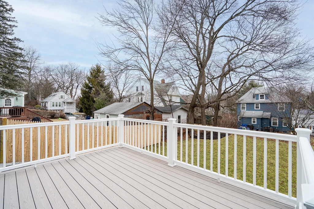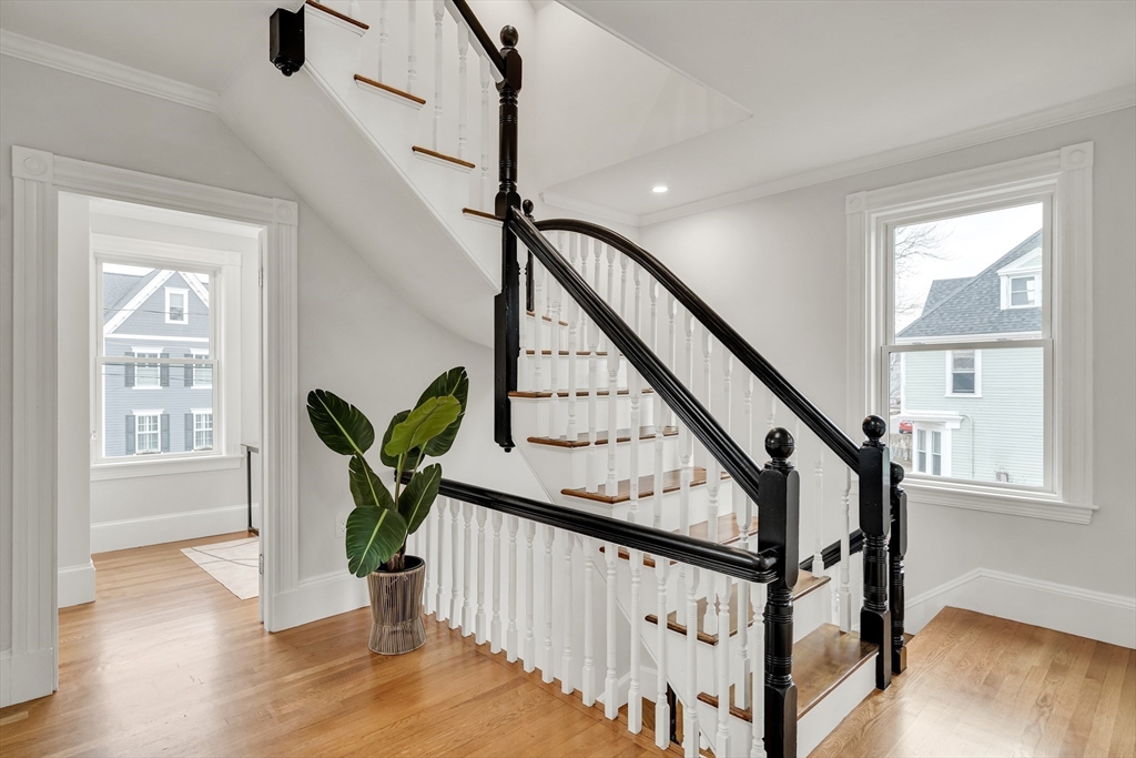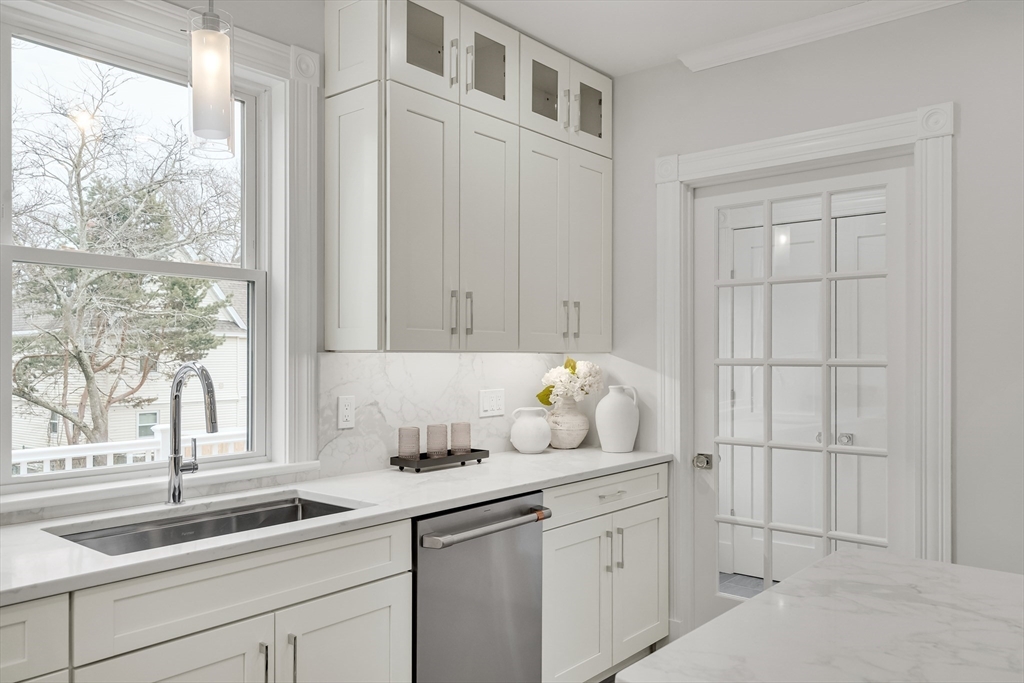 This beautiful Colonial underwent a complete renovation in 2025, introducing luxury amenities throughout. Elegant gourmet kitchen showcases high-end appliances, stunning quartz counters and backsplash, custom cabinetry, and an expansive center island. Grand pocket doors connect the formal dining room and the bay-front living room. Offering 5 bedrooms, 3.5 baths, home office, and second-level laundry, this home features soaring ceilings, abundant natural light, gleaming hardwood floors, and detailed millwork. Spacious primary suite offers 2 walk-in closets and spa-like bath with a soaking tub and walk-in shower. Thoughtfully designed rear entry includes custom coat room. Large deck off the kitchen overlooks professionally landscaped grounds with irrigation system. Driveway offers rare side-by-side parking. Covered rocking-chair front porch enhances curb appeal. Ideally situated just 0.4 miles to the West Roxbury commuter rail station and steps to neighborhood shops and restaurants.