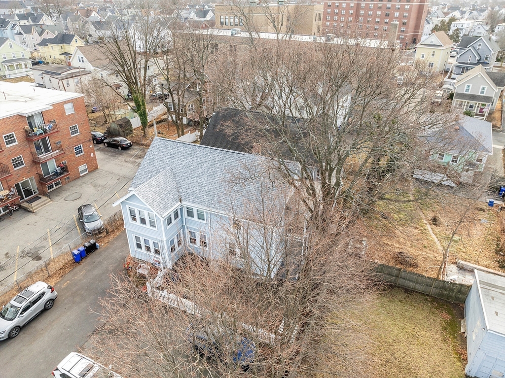 OUTSTANDING INVESTMENT PROPERTY. OWNER OCCUPIED FOR OVER 60 YEARS AND WELL MAINTAINED. NEWER ROOF (see drone photo) , NEWER SIDING, AMAZING AMOUNT OF OFF STREET PARKING HARD TO FIND. NEWER PAVED DRIVEWAY, 4 MINUTE WALK TO TRAIN. All new copper pipes to the street. Delivered empty of tenants. Unit #2 (1 bedroom) was getting $1950 a month. Unit #1 has huge updated kitchen and beautiful home office. Unit #1 (3 bedroom) was owner occupied and is now empty. Potential rent $3000 a month plus. Terrific kitchen, home office and amazing storage space/room for expansion on 3rd floor. Laundry hook up in Unit #1 as well as AC cooling split on floor 2. Laundry for unit #2 in basement. Dry basement with workshop area. Vinyl windows throughout property. All separate utilities.