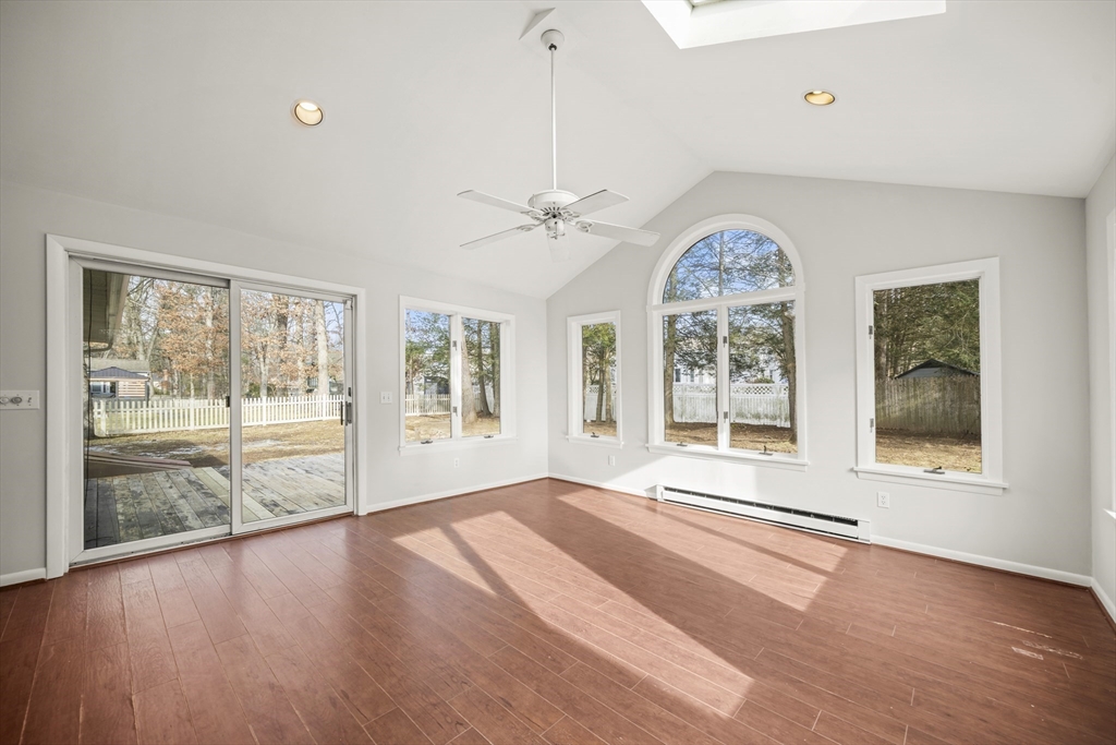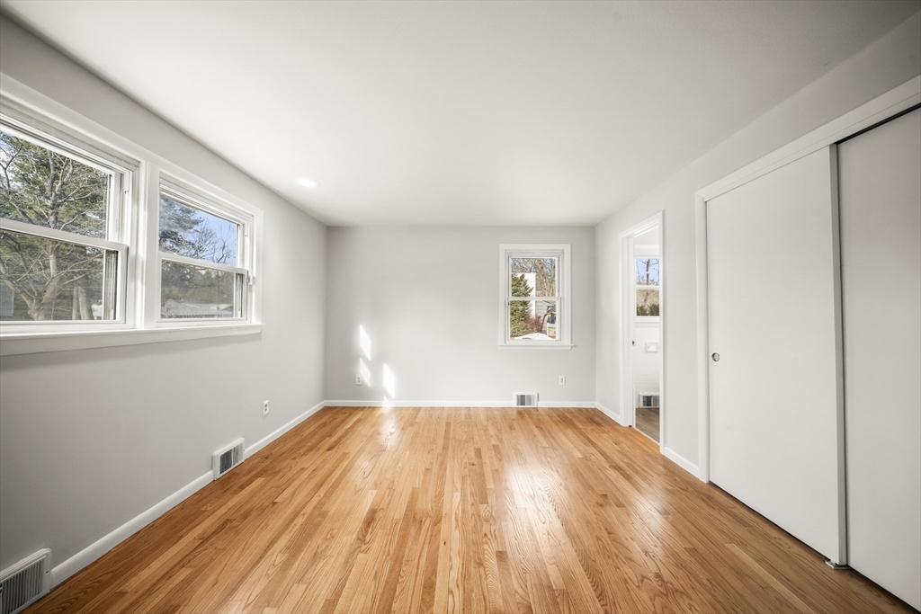Welcome Home! You’ll love this freshly painted, sun-filled three-bedroom, one-and-a-half-bath ranch located on a sidewalk-lined street close to schools, parks, shopping, and restaurants. Beautifully refinished hardwood floors run throughout the home. The large eat-in kitchen offers abundant cabinet space and opens to a family room with cathedral ceilings. Sliding doors lead to a deck and fenced-in backyard—perfect for relaxing or entertaining. Additional highlights include central air, gas heat, a two-car garage, and a nice flat lot. The basement provides finished space ideal for a home office, plus a large additional area perfect for a recreation room or storage. Enjoy the ease and comfort of single-floor living. Schedule your private showing today!