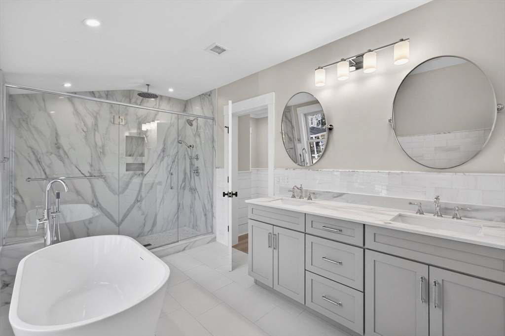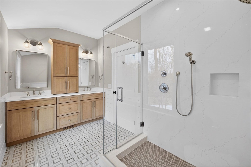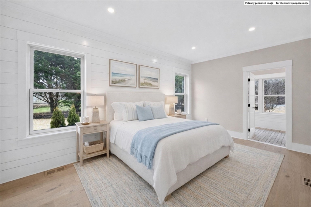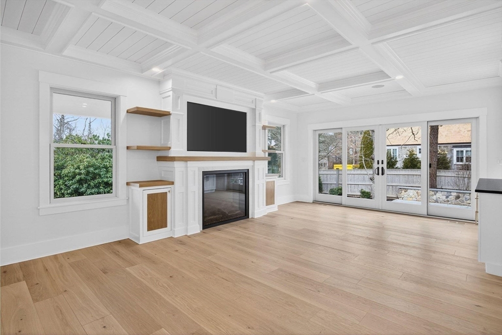 Perfectly sited in sought-after North Chatham, this new construction home is a masterwork of coastal design. The entryway sets a refined tone, opening to a great room with shiplapped and coffered ceilings that create balance and elegance. At one end, a clean-lined kitchen boasts custom cabinetry, a striking quartz island, and premium Thermador and Fisher & Paykel appliances. A dining area flows seamlessly to a living space anchored by a dramatic fireplace and adjacent bar with leathered granite and wine fridge. Unique architectural elements—paneling, designer finishes, and timeless millwork—accentuate the home's modern yet serene atmosphere. Two primary suites, on both the first and second floors, feature custom closets and spa-like baths with natural tones against crisp white backdrops. A mudroom with built-ins, a half bath, and access to the oversized garage add convenience. The lower level offers a recreation room, bonus space, and full bath - all with ample closet/storage space.