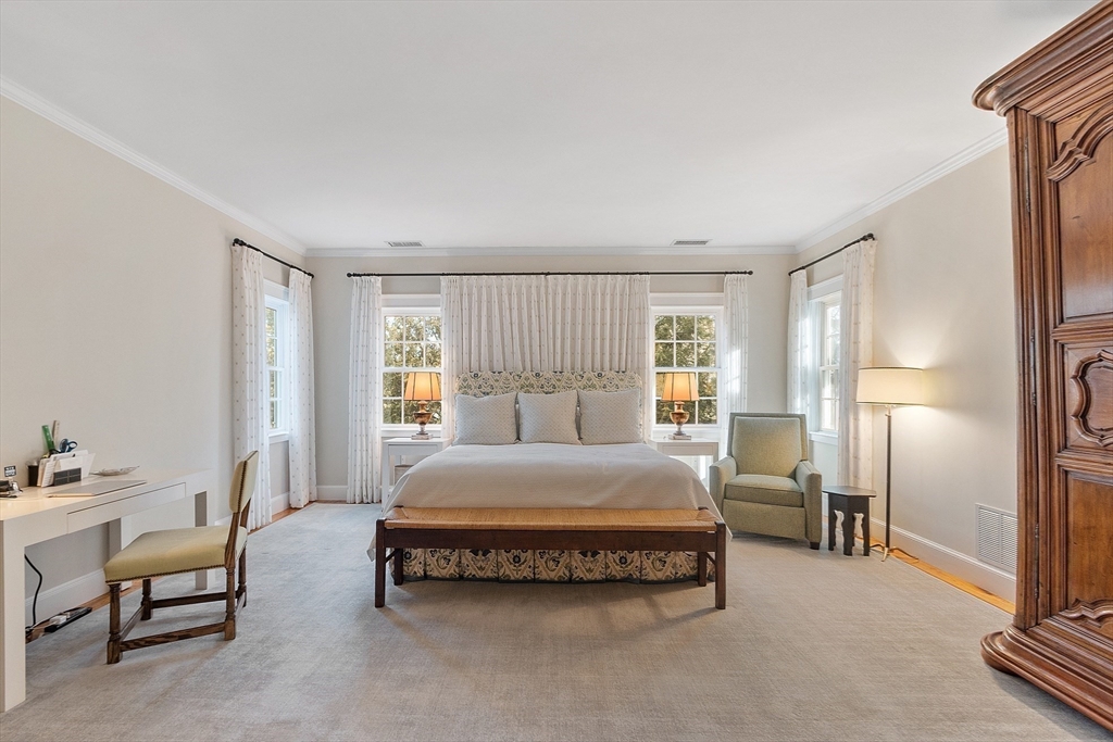 A masterpiece of architectural elegance and meticulous design this spacious Nashawtuc Hill home offers a sophisticated and comfortable lifestyle with room to grow. Built on the former site of WGBH's "The Victory Garden", sited among heirloom trees and professionally designed landscape enjoy 1.7 acres of sweeping, level lawns and tranquil views of a private backyard and pond, a leisurely stroll to town center. Inside, experience the grandeur of its expansive rooms, high ceilings, fine finishes and sunlit spaces. The heart of the home is the 2-story great room filled w/windows, authentic reclaimed beams and floors welcome you and French doors open to a large, covered bluestone terrace, perfect for easy indoor-out living and entertaining. Outstanding gourmet kitchen w/eating area, elegant living and dining rms, private first-floor office/BR w/full bath, luxe main suite and 4 add'l BRs w/ensuite baths attached 3-car garage w/epoxy floor completes this exceptional offering.