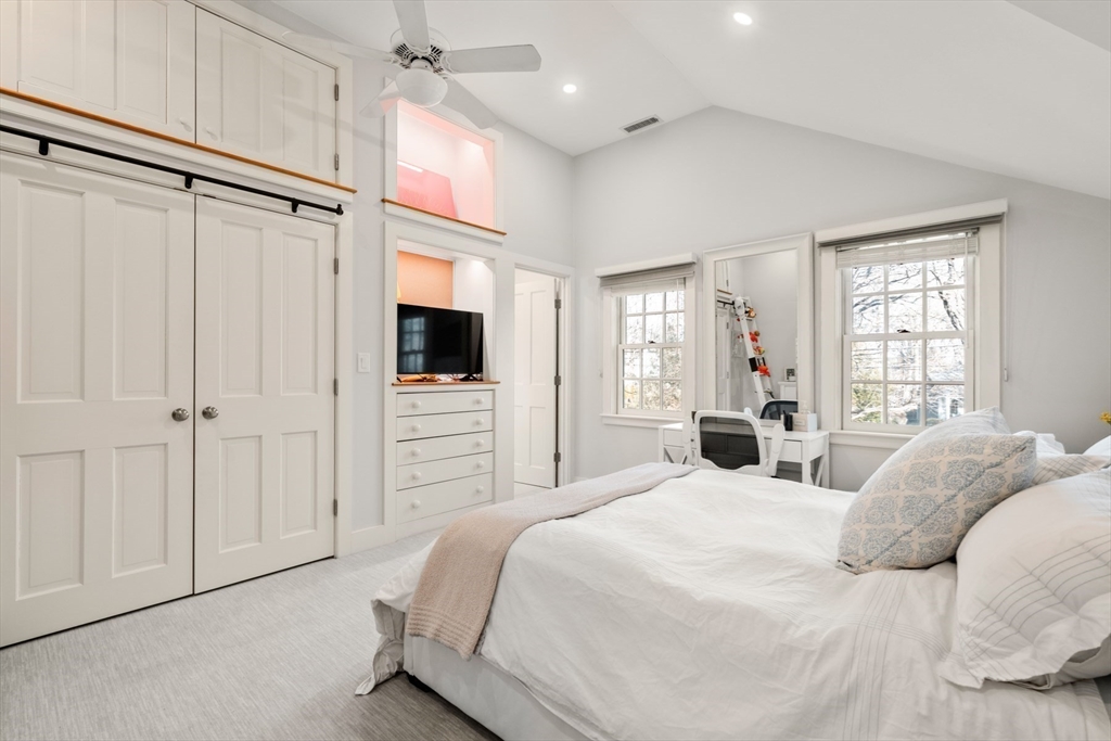 A rare Wellesley gem set on 1.15 acres, overlooking the 15th hole & 16th tee of Wellesley Country Club with sweeping scenic golf course views. Fully renovated in 2022, this distinguished home blends historic character with refined luxury, featuring wide pine floors, 6 fireplaces, and walls of windows overlooking the greens. Gracious living spaces include an inviting great room, sophisticated library, elegant dining room, private home office with separate entrance (or 6th bedroom). The second floor features a vaulted primary suite and 4 additional bedrooms, while a flexible third-floor game room adds versatility. The finished lower level includes a billiards/family room, gym, workshop & storage. Outdoors, a bluestone patio and wraparound deck capture panoramic views, spectacular sunrises and sunsets, fruit trees and a 19th-century barn w/2 horse stalls and fenced paddock. Abutting conservation land with a two-car garage, this is a rare opportunity to own a piece of Wellesley history.