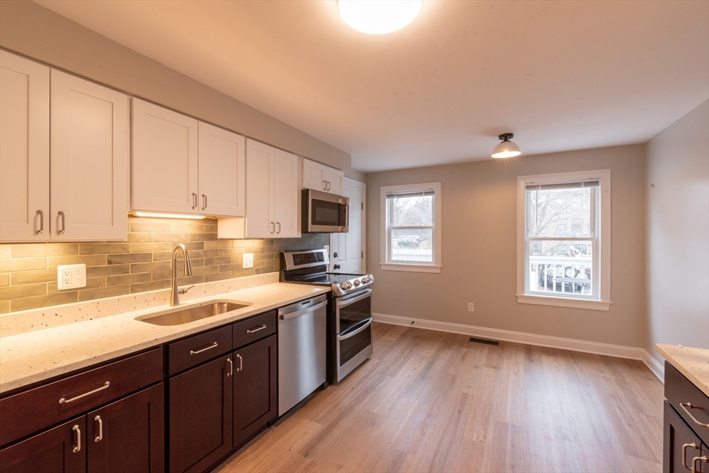 19 Hoyle St, Unit 1 is a spacious, sun-filled one-bedroom apartment that has been freshly renovated throughout. This inviting home features an eat-in kitchen with new cabinetry, updated flooring, and high-end appliances. The refreshed bathroom includes a new quartz-topped vanity, while the large living room and bedroom are filled with natural light and showcase timeless fir floors.Additional highlights include parking for one car, on-site laundry, extra storage, and efficient gas heat—making everyday living comfortable and convenient.Ideally located in a quiet neighborhood yet close to everything, the home is just 0.2 miles from the Norwood Central Commuter Rail, 0.5 miles to downtown Norwood, and only minutes to the shopping, dining, and services along Route 1.