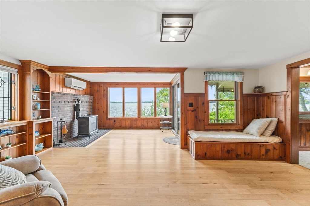 WATERFRONT COMPOUND on beautiful Assawompsett Pond. 3 Buildings.This charming and unique Lakeville property offers direct waterfront access for fishing and nature enjoyment and is surrounded by abundant wildlife and peaceful views year-round. It is set aside a hilltop with stunning views of Massachusetts largest natural lake, (4 square miles). There is a dock, mature flower gardens, and the expansive rear of the property offers additional space for storing your fishing boat.The home has been updated with mini-splits, fresh paint, a new water heater, and new windows. It is set in an exclusive private neighborhood surrounded by well-maintained homes offering exceptional privacy and a peaceful setting. A highlight of the property is its two substantial garage structures. One oversized primary garage is as large as the house itself and features, a workshop, upstairs office, and a turret. It offers versatility for a business, workshop, storage, or hobby space. See below for more info