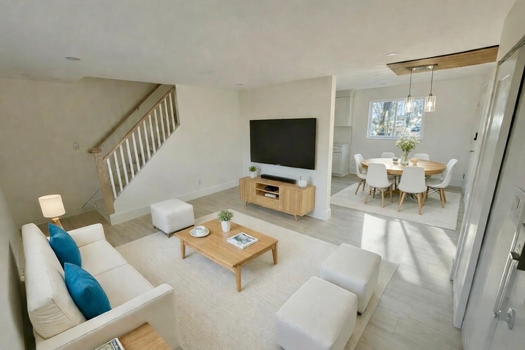 Beautifully renovated condo in a prime Framingham location! This MOVE-IN READY unit features new kitchen cabinets, new appliances, new windows and new flooring throughout, offering a fresh and modern feel. The main level includes a spacious living room with a designated dining area, perfect for everyday living and entertaining. Upstairs, you’ll find two generously sized bedrooms and a fully renovated bathroom. The bonus finished basement space provides incredible flexibility and is perfect for a recreation room, playroom, home gym, office, or additional living space to suit your needs. Enjoy an excellent location directly across from Butterworth Park, featuring sports fields, tennis courts, and outdoor recreational areas. Conveniently located near shopping, dining, and major routes.