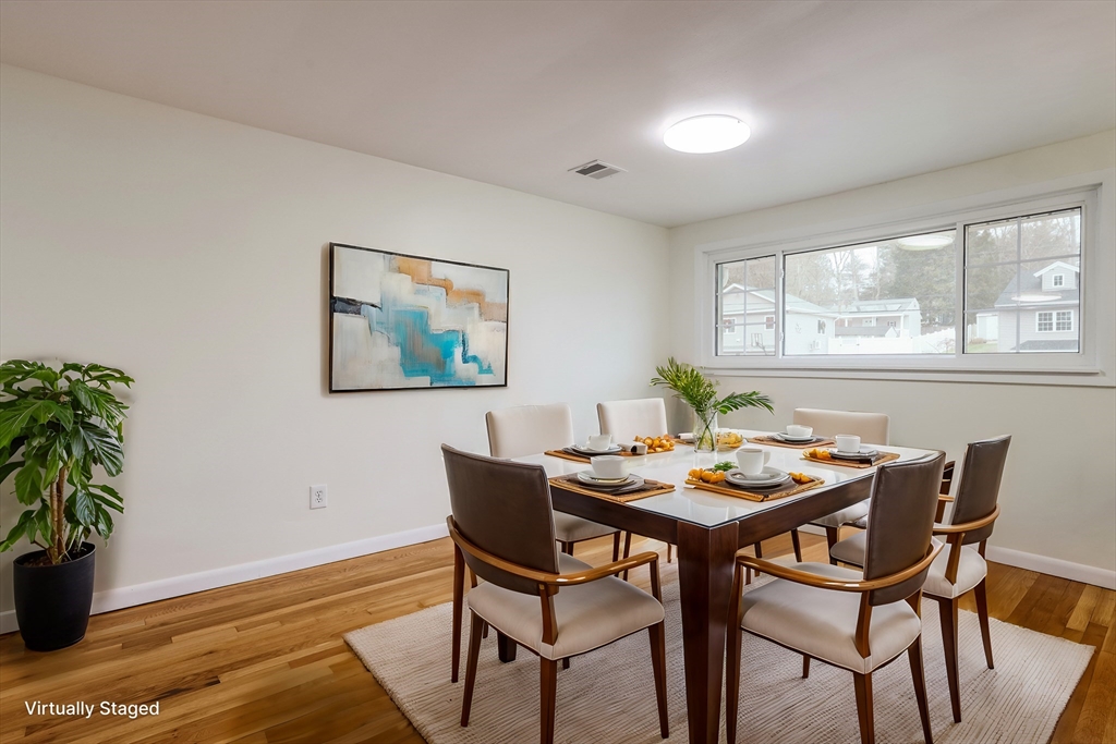 This home in an amazing location just one block from Mary E. Finn Elementary School and minutes from Major Highways including RT9, I-90 and I-495 and close to renowned private schools such as Fay School and St. Mark's School. This freshly painted home features newly refinished hardwood floors, a spacious kitchen with oak cabinets, granite countertops, an island, and an exterior-vented exhaust fan. The open-concept family room boasts a beamed cathedral ceiling and access to a back deck, perfect for entertaining or relaxing. The entire backyard is fenced-in, offering privacy and security, and includes a beautiful backyard ideal for outdoor enjoyment. The finished basement with recessed lighting provides flexible space for a home office, playroom, or media room. The oversized two-car garage includes a work area, and the double driveway accommodates 10+ cars. Energy-efficient updates include a new water tank & heat pump for central heating and cooling and, solar panels for lower energycos
