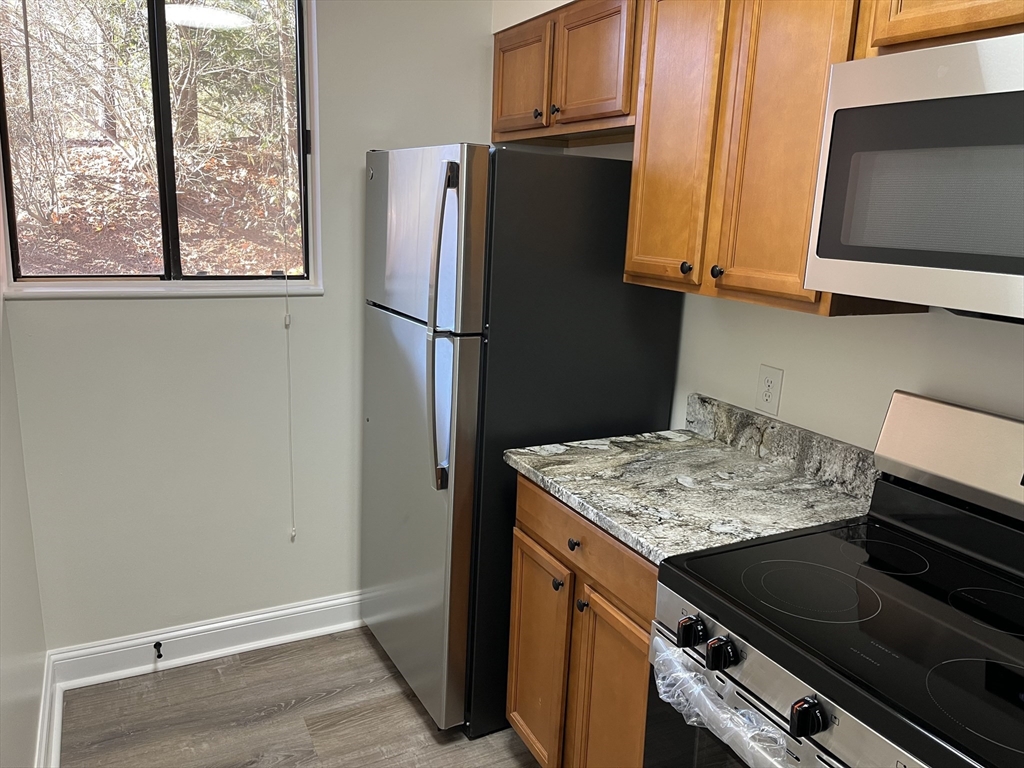 Rental opportunity in sought after Highwood Estates! This 2 bed/1.5 bath townhouse is ideally located close to all Franklin amenities. Enter the first floor via a spacious tiled entryway with double closets, leading into a generous living room with electric fireplace and space for a dining area, plus a slider to your private patio with outdoor storage shed. Kitchen has been recently upgraded with brand new stainless steel appliances and granite countertops. An upgraded half bath completes the first floor. Upstairs, find a large primary bedroom with dual closets with and a Hollywood Bathroom with double-sink vanity and a second bedroom with walk-in closet. The laundry room area and linen closet complete this level. An electric heat pump provides efficient heat and central air to keep you comfortable in all seasons.