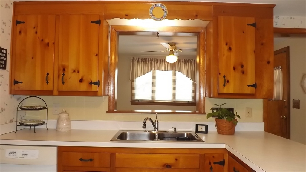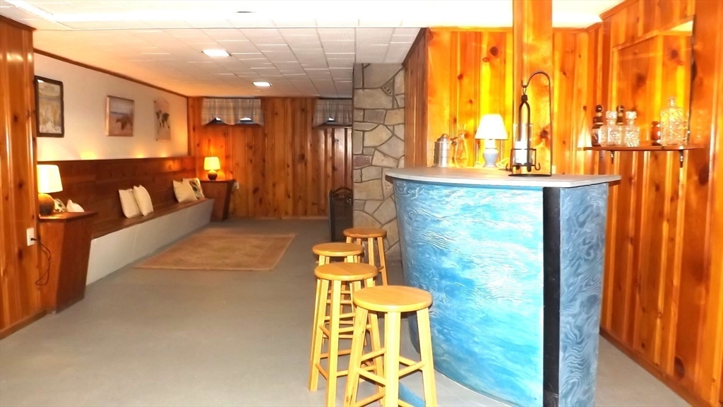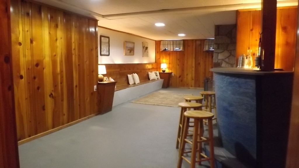 This custom built mid century ranch home has been owned and loved by one owner. This cherished home features a cabinet packed eat-in beautiful knotty pine kitchen in exellent condition. Den off kitchen. 3 bdrms with refinished hardwoods on the main level. The L shaped dining rm/living rm has picture windows, refinished hardwoods & masonry fireplace that has never been used. Retro tiled full bathroom in great condition. The "rumpus room" basement is tastefully paneled with a bar, bench and granite stone fireplace. A great place for game nights & family gatherings. Included in the basement is a convenient 1/4 bath. Two laundry hookups. The fenced in yard has an in-ground pool for summer enjoyment. You will appreciate the sturdy construction in this charming home. Many updates include: Roof, 2025 * Oil tank, 2024 * Pool pump, 2025 * Electrical GFIs throughout the house, 2025 * Shutters, 2025* Located minutes from U-Mass, Route 20, 290, Mass Pike and a quick walk to Lake Park!