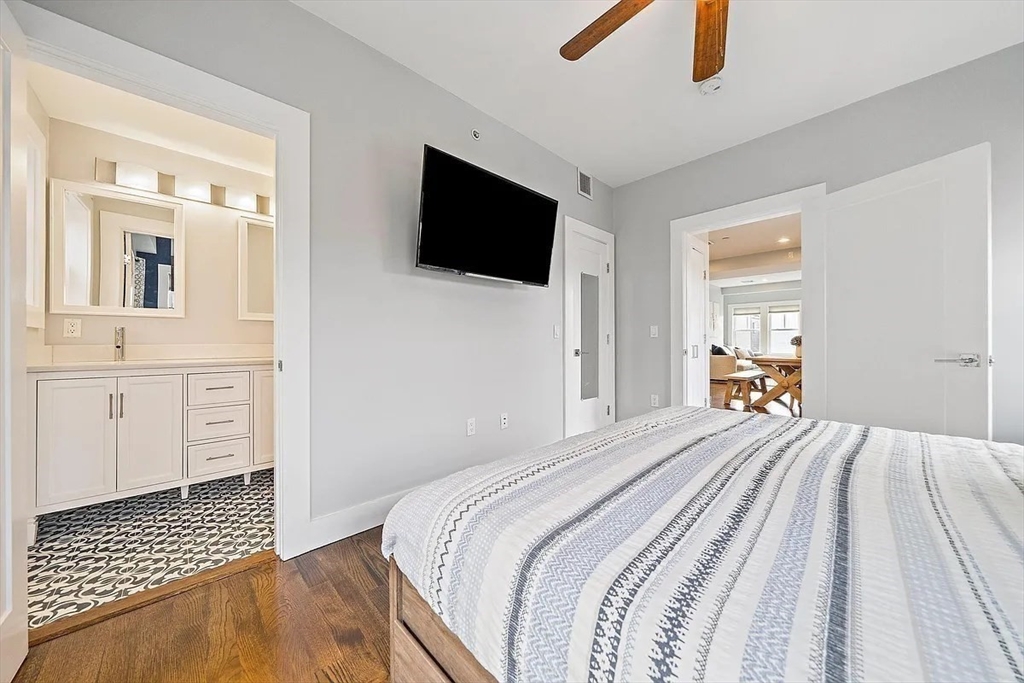 Stunning 2 Bed / 2 Bath with garage parking! This 2016 ground up construction sits in an A+ location, just steps from Southie's best shops and restaurants. Open concept layout with hardwood floors, gas fireplace, and in-unit laundry. This upper-level home offers amazing natural light, central AC and ample storage. Easy access to public transit, various local beaches, and I-93. This unit is a must-see!