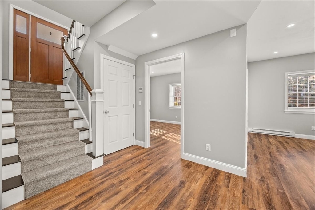 Welcome to this beautiful 3 bedroom, 2.5 bath split level that blends style, comfort and modern convenience. The open and inviting layout showcases gleaming hardwood floors, stunning kitchen featuring quartz counters, tile backsplash and stainless steel appliances perfect for everyday living and entertaining. The bathrooms are tastefully done with high end finishes, offering a spa like feel. This smart home is equipped with integrated technology for enhanced comfort, security, and efficiency, plus a whole house generator for peace of mind year round. Outdoor living shines with a stone patio featuring a dedicated dining area, along with a low-maintenance manufactured deck that spans the full length of the home-ideal for relaxing or hosting gatherings. Two car attached garage and move in ready condition make this home a standout.