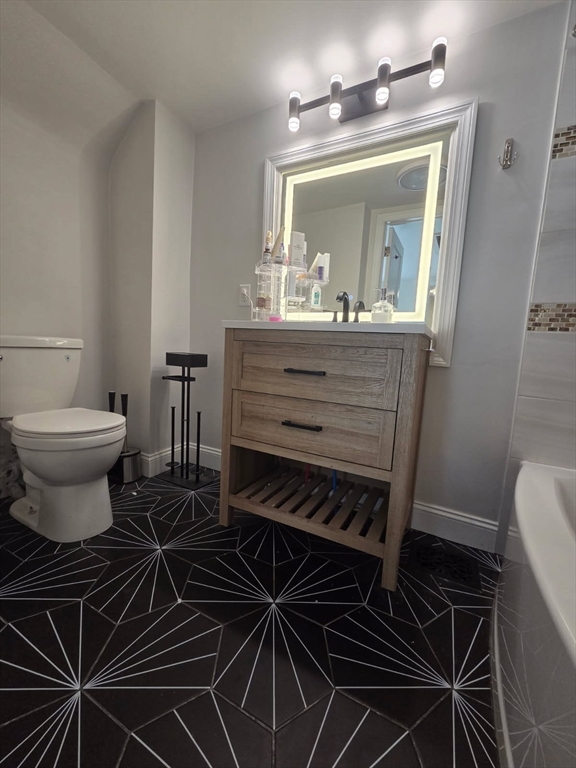 Gorgeous, fully renovated home in one of the best locations for commuting to Boston you've ever seen! The commute can be as quick as 10 minutes! Location is also walking distance to all of downtown Stoneham's fabulous restaurants and shops. This home was completely overhauled in 2024 with gorgeous herringbone hardwood flooring, open concept layout, accent wall in the living area, modern two-tone kitchen with quartz waterfall island. Half bath on the first floor and lovely enclosed porch that leads to the driveway. Energy efficient, insulated basement and new systems including central air. The second floor features three bedrooms and a stylish full bath, with an additional finished attic space as a unique loft style hideaway. This home will not last!