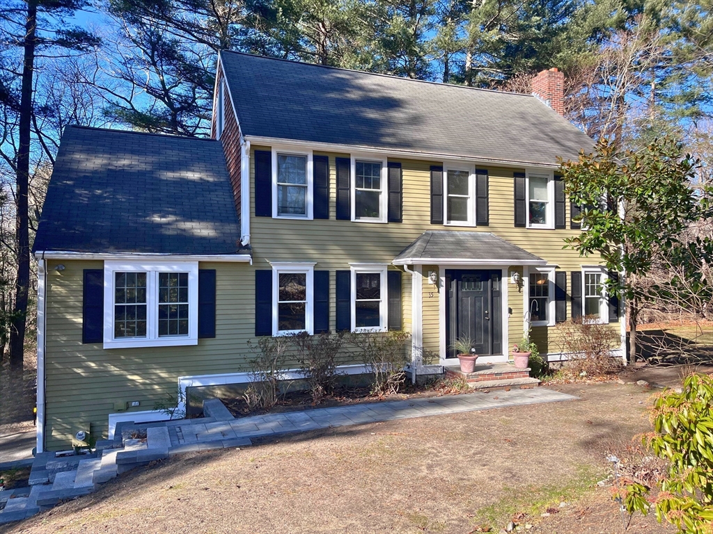 Nestled at the end of a quiet cul-de-sac in desirable Hanover,this inviting 4-bedroom,3.5-bath Colonial offers privacy and flexibility on a picturesque 2-acre wooded lot.Sunlight fills the open floor plan,highlighting refinished hardwood floors and freshly painted interiors.Cozy up in the family room with a pellet stove or enjoy evenings by the fireplace in the living room.The flexible layout allows for a primary suite on either the second or third level,each with an en suite bath—ideal for multi-generational living,a private retreat,or teen hangout.Spacious living and dining areas are perfect for everyday living and entertaining.Additional highlights include a partially finished walk-out basement for a home office,gym,or playroom,plus a two-car under garage.Major updates include a boiler and A/C replaced within the past few years.Step outside to unwind and enjoy peaceful wooded surroundings, all while remaining close to shopping and commuting. Lawn was graded & re-seeded in Fall 2025.