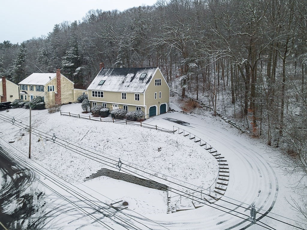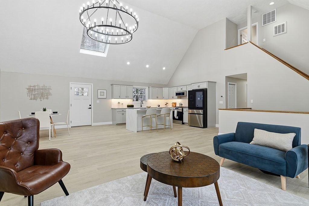 Welcome to this beautifully renovated home, perched privately overlooking the neighborhood, abutting deep quiet woods. With 4 large bedrooms, 3 oversized bathrooms, and over 3,000 square feet of beautifully redesigned living space, you are sure to fit the whole family! Vaulted ceilings and an open-concept layout create a dramatic yet inviting atmosphere, flooded with natural light throughout. The stunning kitchen is the heart of the home, and features a waterfall quartz island, new soft close cabinets, modern finishes, all new appliances including a Smart Fridge with AI, and seamless flow into the main living and dining areas - perfect for entertaining. Major upgrades include new electrical and a tankless hot water heater for modern efficiency and peace of mind. A two-car garage, generous living spaces, and serene privacy complete this exceptional property. On the Sudbury line and easy access to Boston, this has seclusion, yet convenience for commuters.