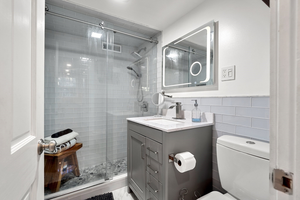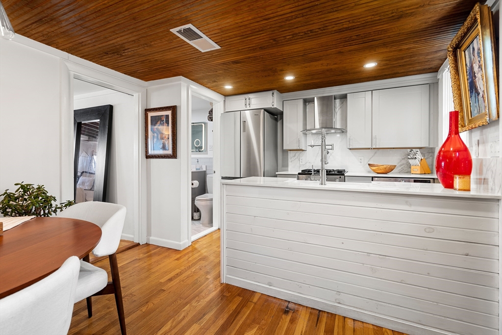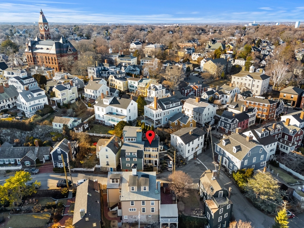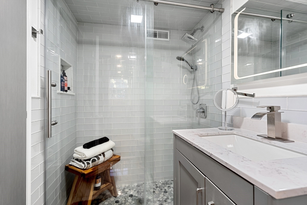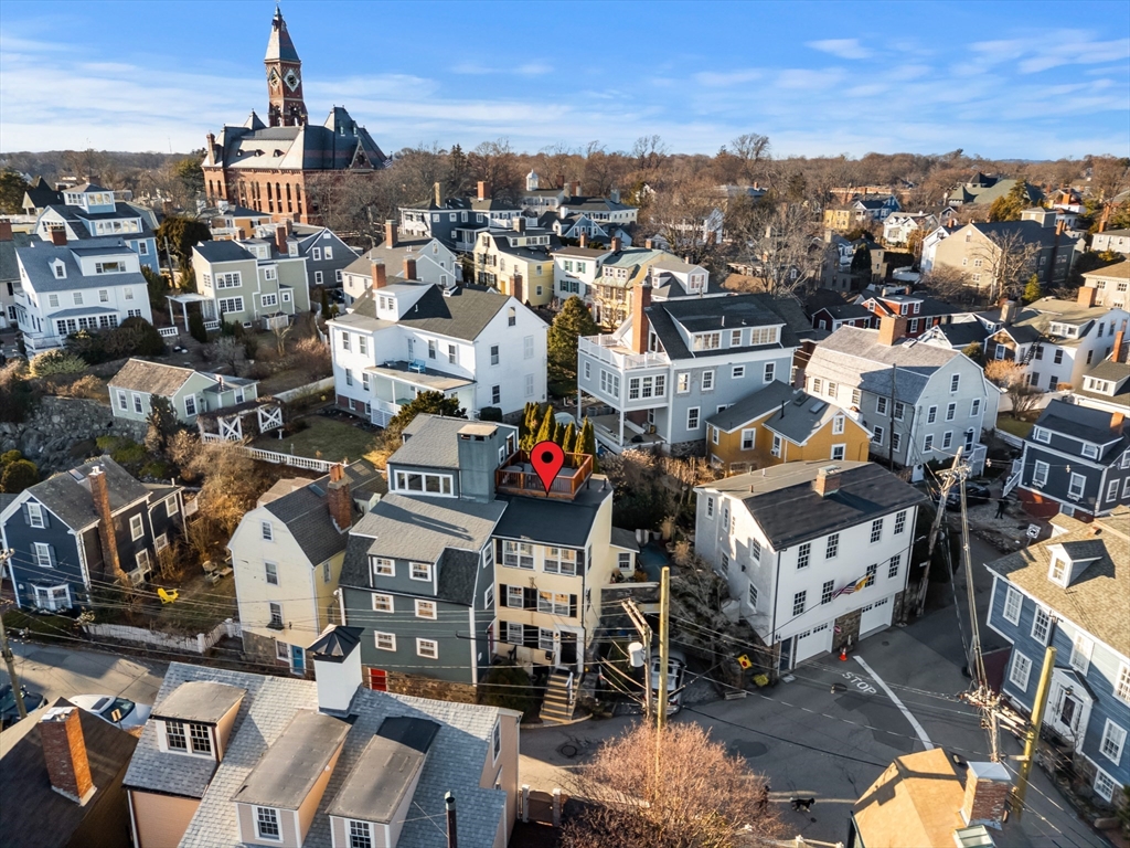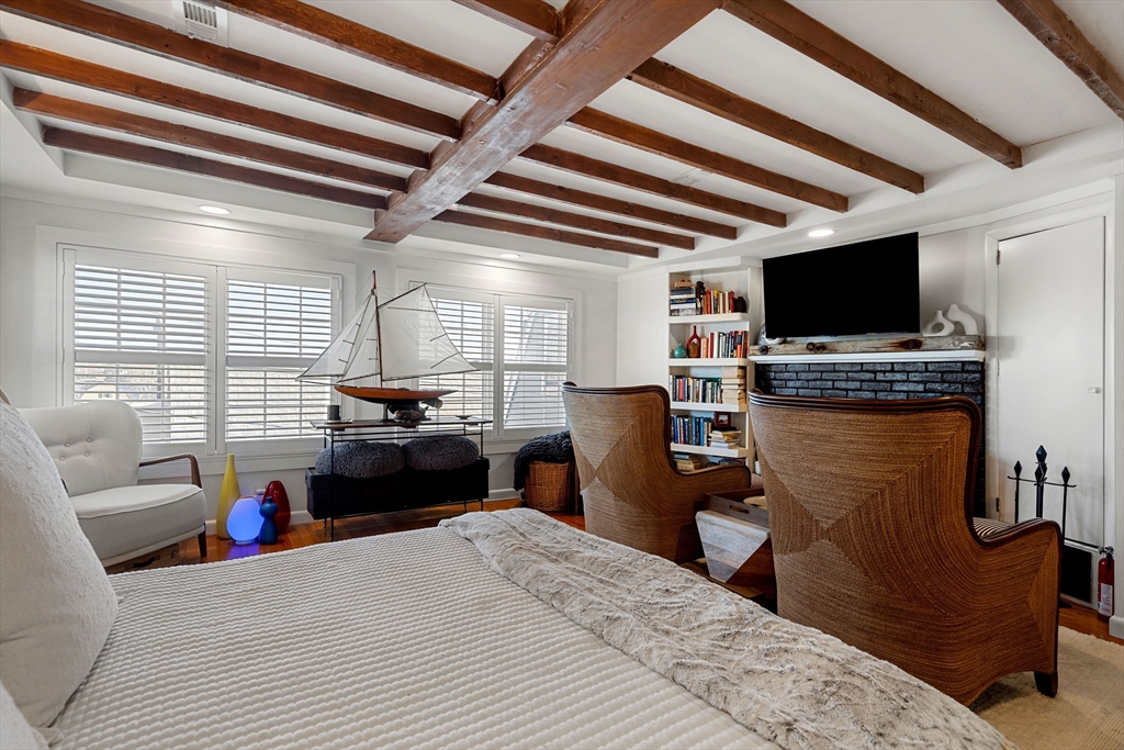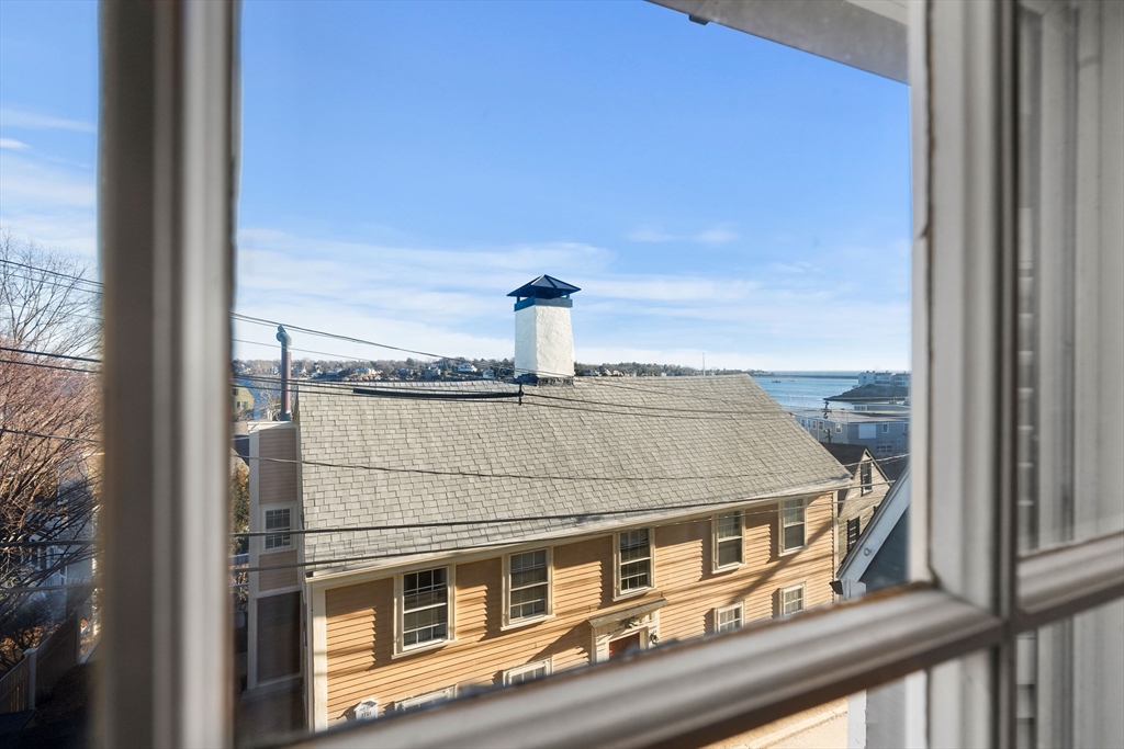 Perched above one of Marblehead’s most charming neighborhoods, this beautifully renovated Penthouse condo offers a rare blend of historic character and thoughtful modern updates. Sun-filled and inviting, the home features warm hardwood floors, exposed beams, and a coastal-inspired aesthetic throughout.The updated eat-in kitchen is both stylish and functional, with porcelain waterfall countertops, stainless steel appliances, a pot filler for the chef in you ,custom cabinetry, and a porcelain farmhouse sink; perfectly integrated into the spacious open living and bedroom with harbors beautiful fire place and also room for a sitting area or home office., A custom renovated bath showcases clean, timeless finishes and a glass-enclosed shower. Additional highlights include in-unit laundry, storage and a cozy deck. This is a picturesque setting just moments from Marblehead Harbor, Old Town shops, restaurants and beaches. A primary home, a weekend getaway or an investment awaits!