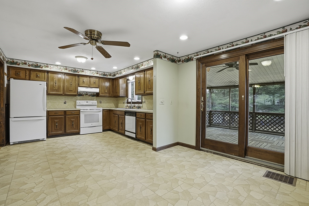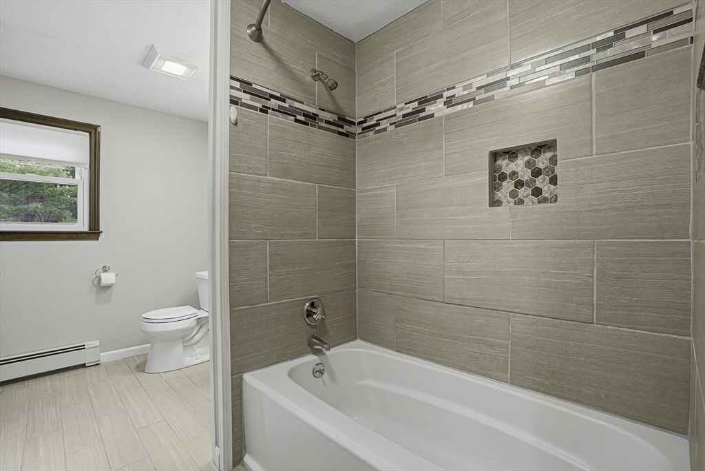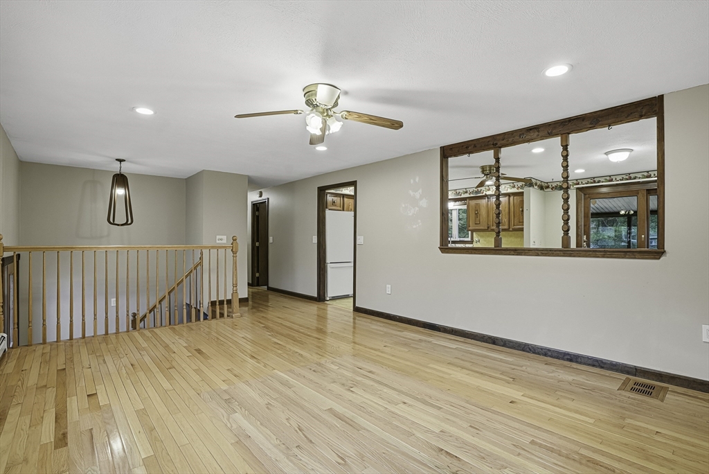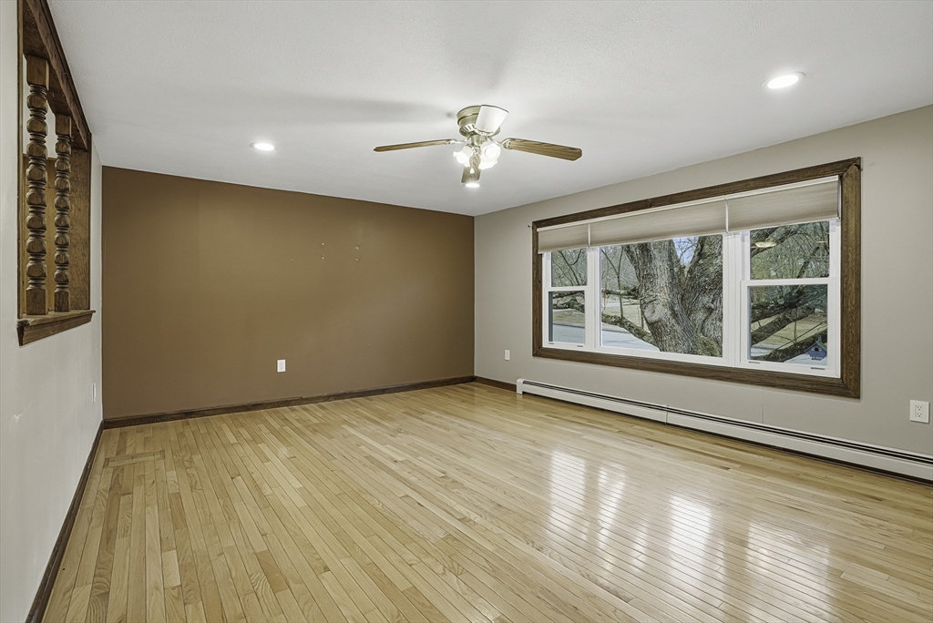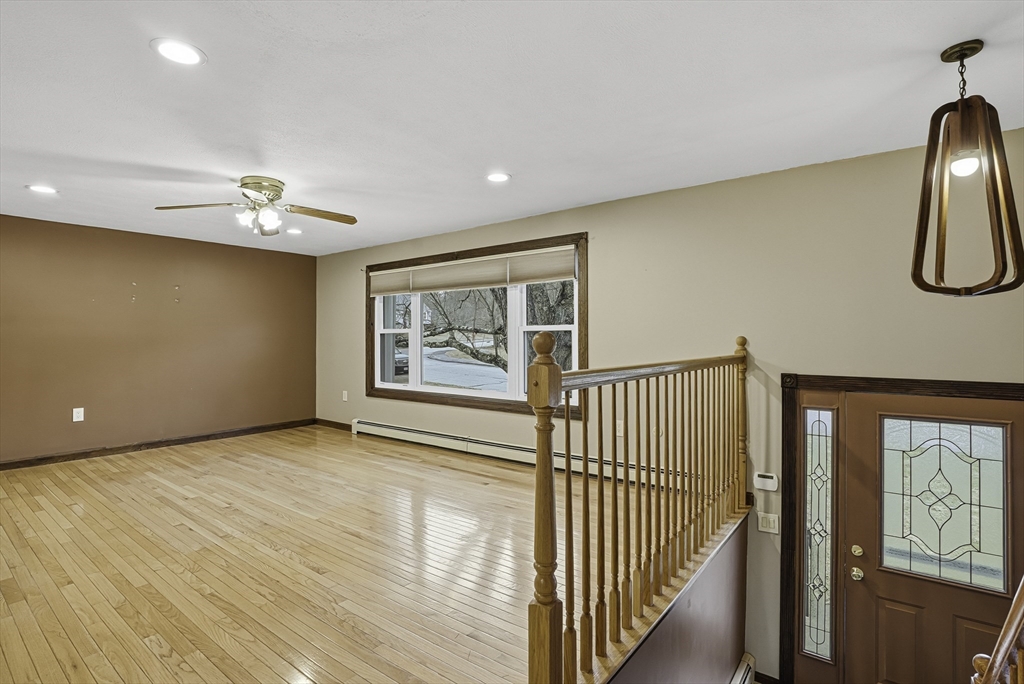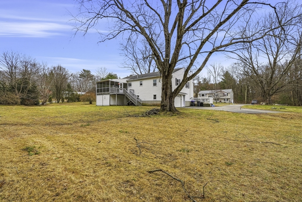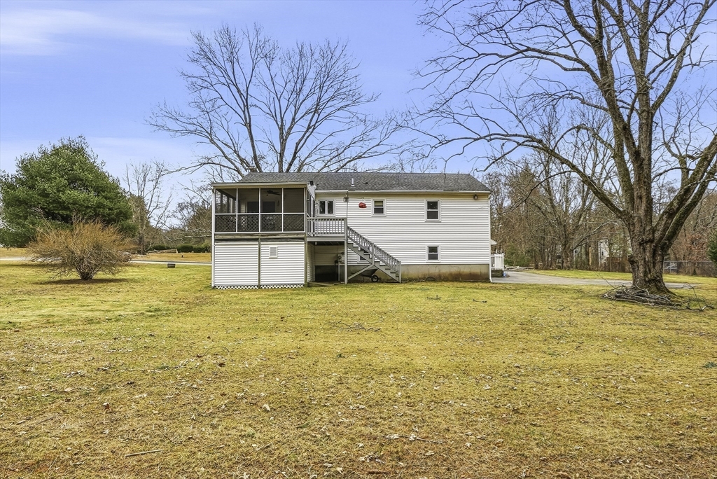 Welcome to this well-maintained split-entry home set in a convenient Mendon neighborhood with easy access to Route 140 and Route 495, making commuting and shopping a breeze. The home sits on a nice level lot and features a one-car garage, storage under the deck, a screened-in deck/porch, and a recently installed septic system. Inside, the main level offers a spacious living area with hardwood floors and recessed lighting, an open kitchen with sliders to the screened porch. The main bedroom has direct access to an upgraded full bath, plus two additional generously sized bedrooms. The lower level features a large front-to-back family room with a dry bar and wood-burning stove, an extra room ideal for a home office or guest room, a bath with a shower & laundry, and side-entry garage access. Plenty of off-street parking completes this offering.
