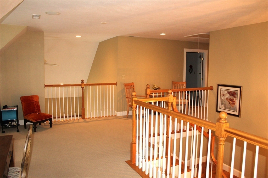 Welcome to Hidden Acres, a 55+ community. This gorgeous unit was originally the model so it is loaded w/ quality upgrades including a cabinet packed cherry kitchen w/ a spacious center island, stainless appliances, hdwd flooring & a plethora of recessed lights. Enjoy hosting family dinners in the spacious dining room accented with crown moldings, wainscoting, & gleaming hdwd. The living room is highlighted w/ a cathedral ceiling, many recessed lights, hardwood, a gas fireplace and a deck overlooking woodlands. A first floor main bedroom is flanked by a tray ceiling, recessed lighting, carpeting, a spacious walk in closet with custom organizers and a stunning full bath with tiled shower and flooring and a double sink vanity. Upstairs you will find a loft area, a 2nd full bath and a 3rd room perfect for crafting or office.and a walk in attic. Additional features include full surround sound, rough plumbed walk out basement, new H20 tank, 2 car garage and so much more.