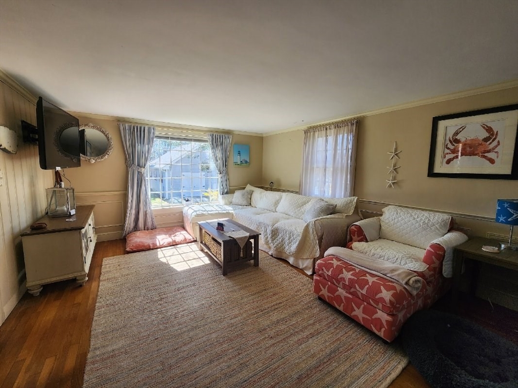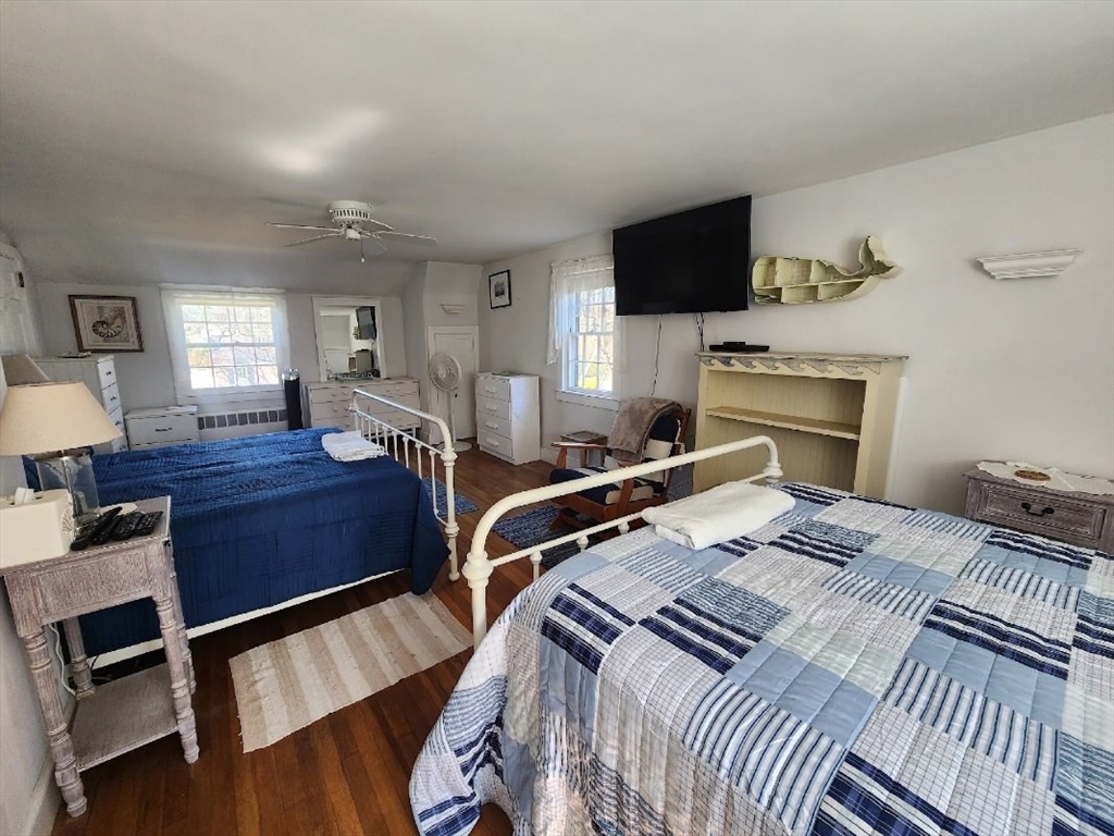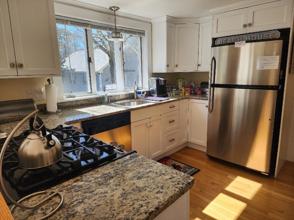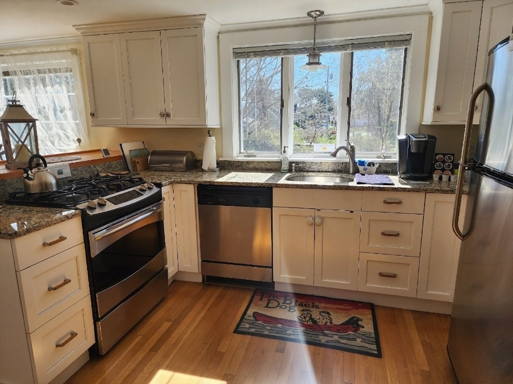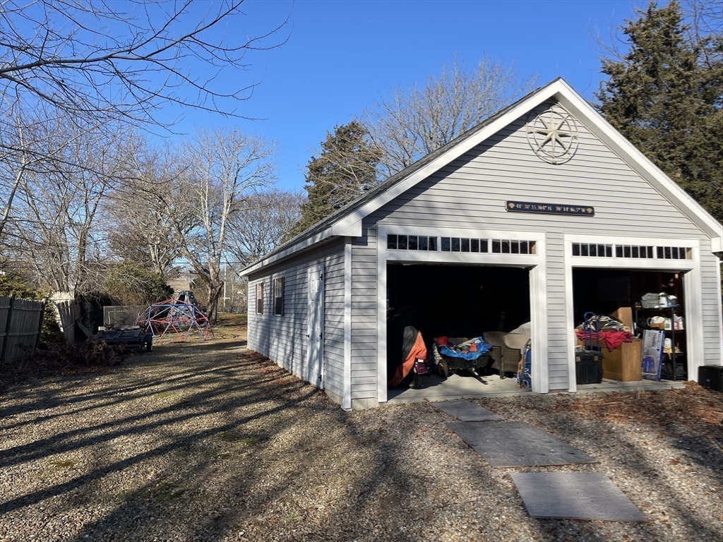 Steps to Lewis Bay to see the fireworks! This wonderful Gambrel Colonial, with unique storage, is located .2 miles from Nantucket Sound and Englewood Beach. If you dream about owning a boat this is a perfect house. Launch ramp next to Englewood Beach and Yarmouth sailing program and you have a boathouse for storage. House consists of 3bed/2bath, new kitchen with granite counter tops and stainless steel appliances, wood floors throughout, first floor main bedroom, front to back living room with space for a big dining room table, BIG 2nd floor bedrooms with full bath. Full semi-finished basement, and 2 fireplaces. There is also outside shower and absolutely beautiful back yard. Double lot with detached garage 24x36 (ADU?). Fits 6 cars! Big backyard and deck for great summer cookouts.