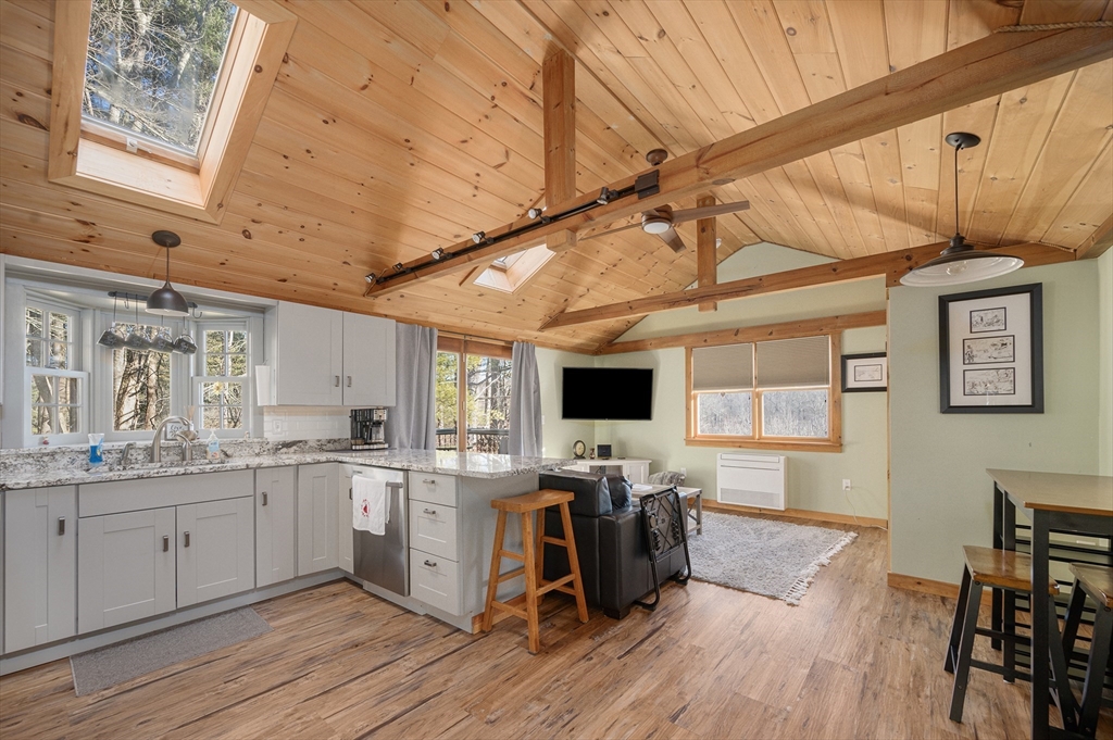 Introducing 455 Brayman Hollow Road, an idyllic remodeled country cottage quietly set along a country road in beautiful Pomfret, CT. This nicely sited home enjoys views of nature and a wooded backdrop, offering a true sense of retreat while remaining convenient to local amenities and highways. The exterior has been fully updated with roof, windows, and siding for a low-maintenance profile that suits the cottage style. Inside, the character shows immediately with wood ceilings, exposed beams, and a warm, cohesive palette that creates a relaxed country feel. The renovated kitchen offers granite countertops, stainless steel appliances, new cabinets, and an undermount sink, efficiently arranged for everyday cooking. A comfortable main living area enjoys flexible furniture placement and great natural light. Upstairs, the private bedroom opens to a rear deck overlooking the landscape, with skylights above and a barn door leading to a spacious, well-finished bathroom. A turn-key cottage