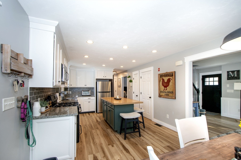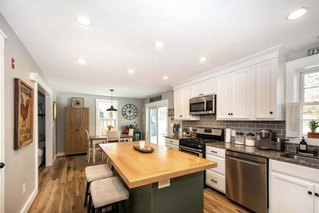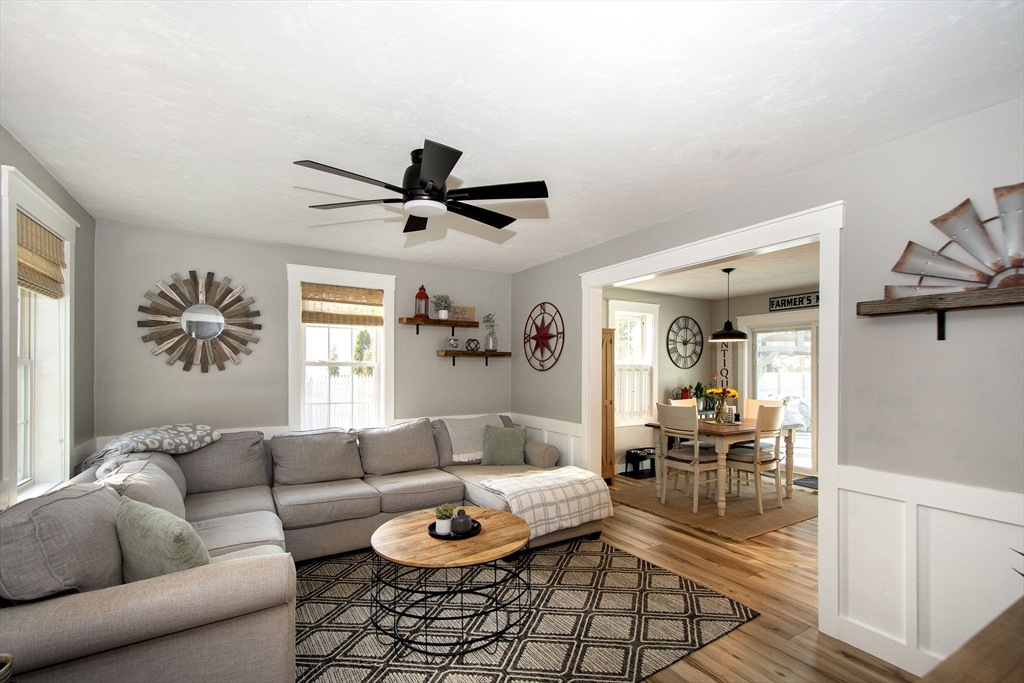 Welcome to 51 Park Avenue, a meticulously maintained 4-bedroom, 2.5-bath Cape that blends modern comfort, farmhouse charm, and coastal living with private beach access just minutes away. Offering three levels of living, this home has been tastefully updated throughout. The main level features an updated kitchen with an island and dining area which features a slider that overlooks the private fenced backyard showcasing a patio, gazebo, mature plantings and fire pit all of which abutts conservation land. A home office, laundry area and half bath complete the first floor. Upstairs includes a primary bedroom with a full bath and two additional bedrooms with a second shared full bath. The partially finished lower level offers flexible spaces which can be used as a bonus room, office, gym and/or an additional bedroom along with an unfinished area used for storage.