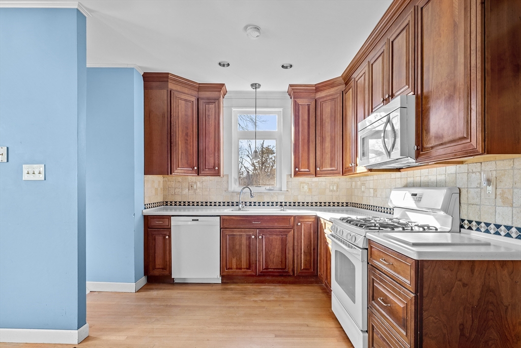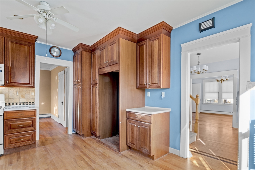 Bright and sun-filled with a clean, fresh feel this home offers a newer kitchen and bath. Enjoy classic charm with hardwood floors, wainscoting in dining room , Eat in kitchen with 42" Craftmaid Cherry Cabinets ,Personal office area, Washer and Dryer in as is condition 3 ZONE Heating, A Large Linen closet on second level plus a nice level lot. Perfect starter home or downsize in a convenient location close to shopping and easy highway access.