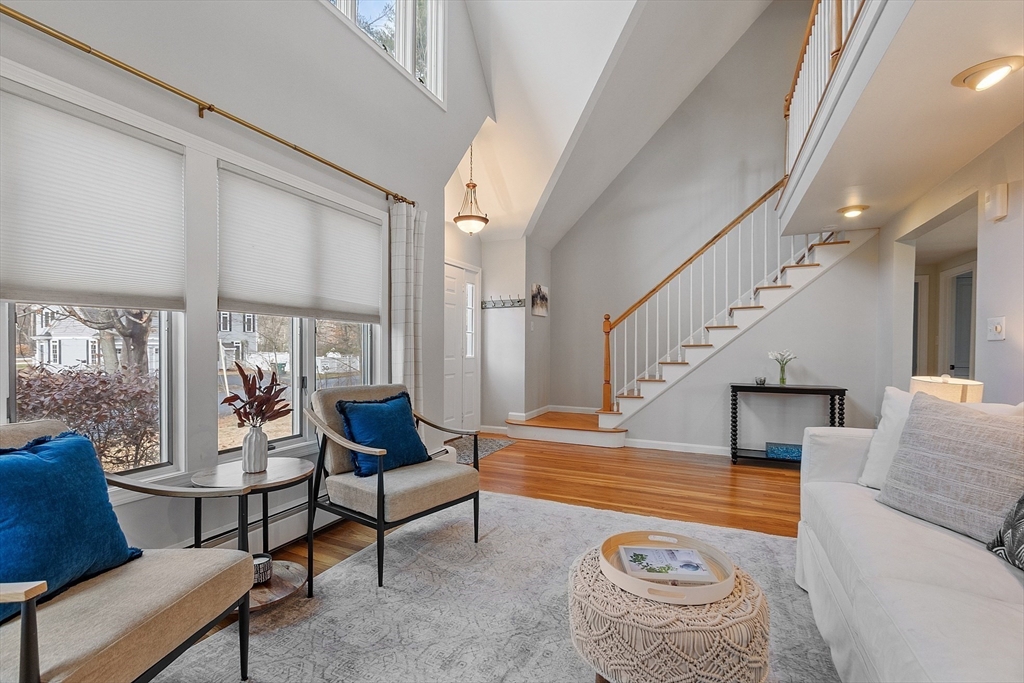 Close proximity to West Acton Village — featuring restaurants, a brewery, fitness studio, ice cream shop, bookstore, playground, and more — this 4-bedroom, 2-bath home offers comfortable living with flexible spaces throughout. The first floor features a beautiful vaulted living room filled with natural light, along with a separate family room and an additional bedroom or office. Sliding doors from the dining room open to a screened-in porch and spacious deck overlooking a tree-lined backyard with established flower gardens—perfect for relaxing, playing, or entertaining. Upstairs are three well-sized bedrooms and a full bath. The finished lower level provides added versatility with a large mudroom (ideal as an office, gym, or drop zone), plus an additional family room/playroom. A wonderful home in a sought-after West Acton location with highly ranked schools.
