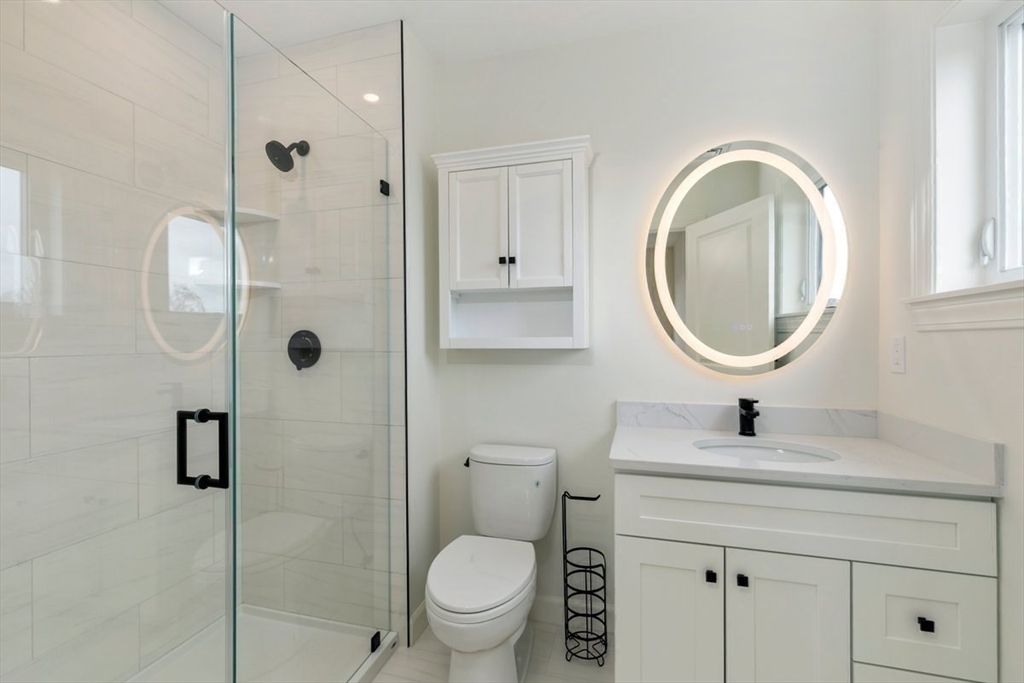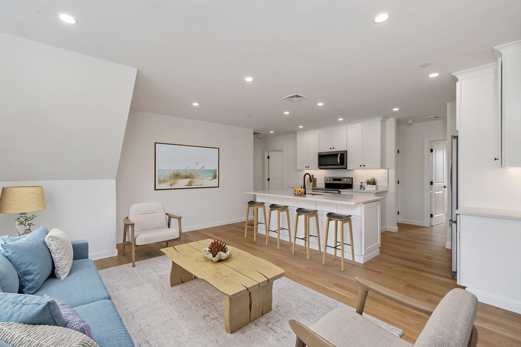 NEW CONSTRUCTION condo offering 5 rooms, 3 bedrooms, 2 baths, with high-end finishes in a prime location. Enjoy this exceptional unit that features an open concept living room/kitchen . ¾” wide oak hardwood floors throughout. Quartz kitchen with large island, 42” cabinets, SS Whirlpool appliances. Central air/heat with Bosch systems, Harvey windows, recessed lighting, and spray foam insulation provide year-round comfort and energy efficiency. Includes in-unit laundry room, sound insulation between floors, 2 deeded parking spaces, basement storage, and a 24/7 monitored fire sprinkler system. Enjoy a large beautifully landscaped fenced yard, and maintenance free exterior. Pet-friendly and professionally painted. Convenient to downtown, restaurants, shopping, and public transit. Ideal for buyers seeking style, quality, and location! Close to beaches, parks, commuter rail, and all that the North Shore has to offer. This one won’t last!