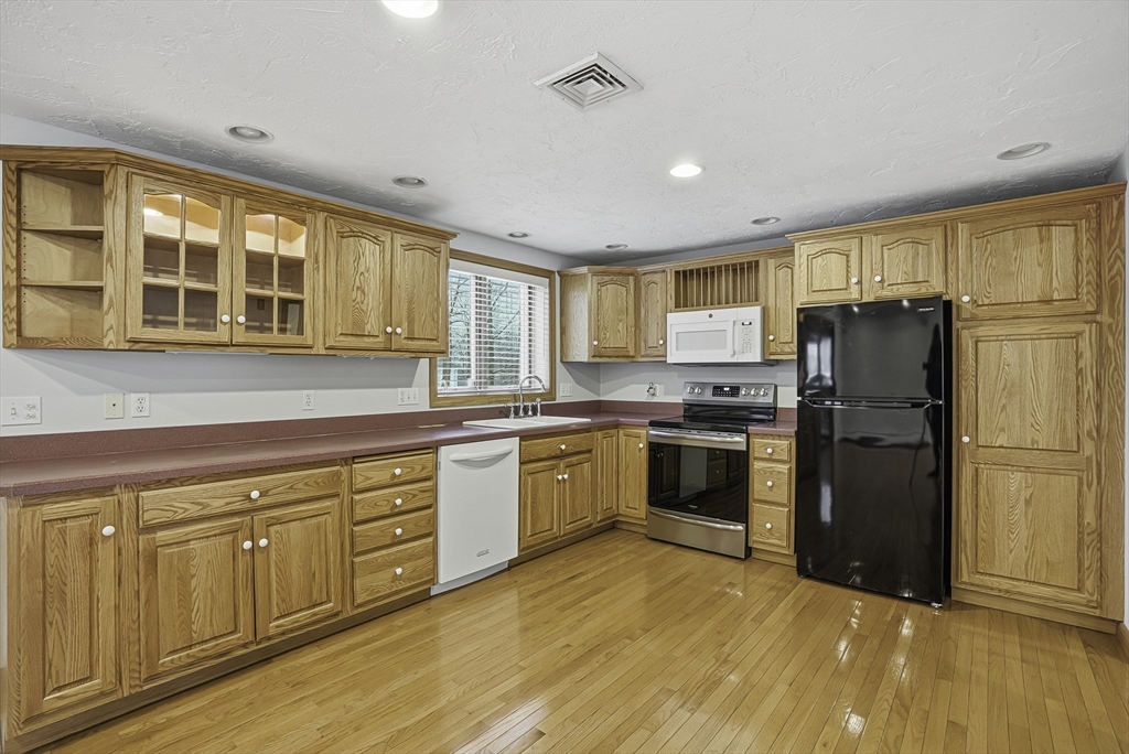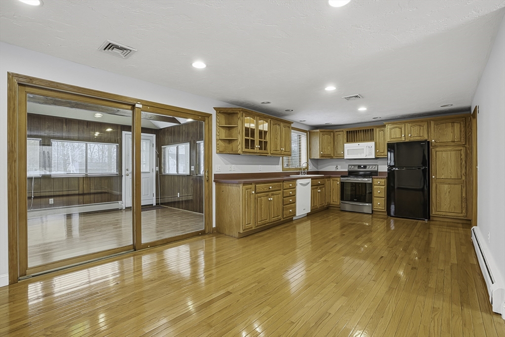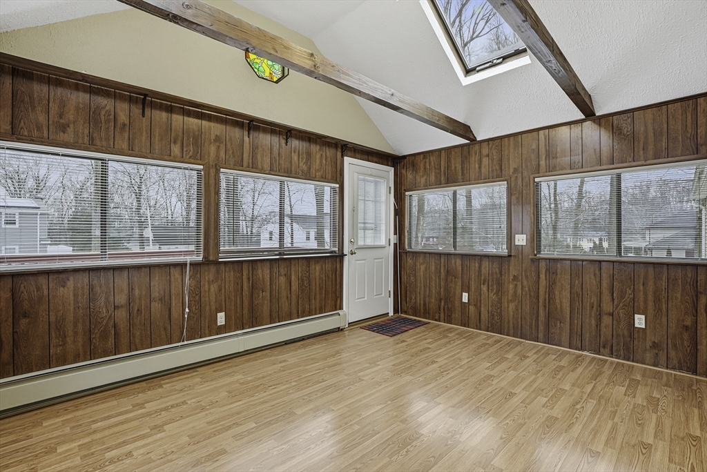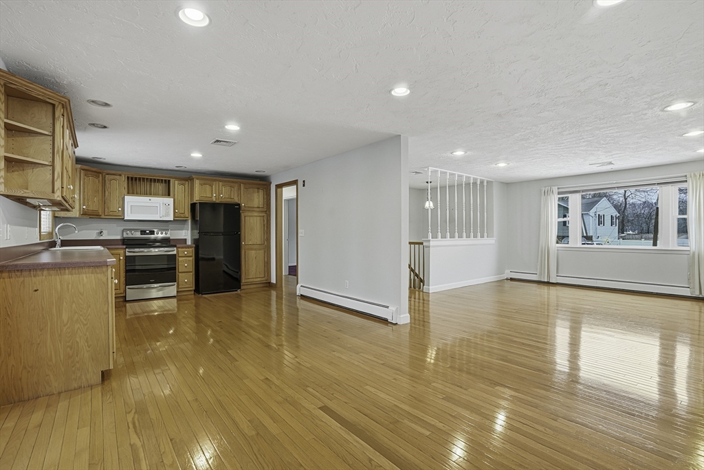Welcome to this well-maintained split-entry home in a desirable neighborhood sited on an oversized lot! Step inside to an inviting, open-concept main level with gleaming hardwood floors that flow through the bright kitchen and living area. Versatile four-season sunroom featuring a cathedral ceiling and direct access to the deck, overlooking the private, fenced-in level yard – perfect for entertaining or play. The main floor features three spacious bedrooms and a full bathroom, complete with tile flooring and a convenient double vanity. The lower level boasts a generous front-to-back family room, a second bathroom, and interior access to the two-bay side-entry garage. Ample off-street parking adds to the convenience. This move-in-ready gem combines comfort, functionality, and outdoor appeal in a fantastic location.
