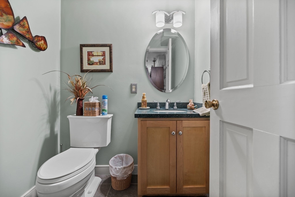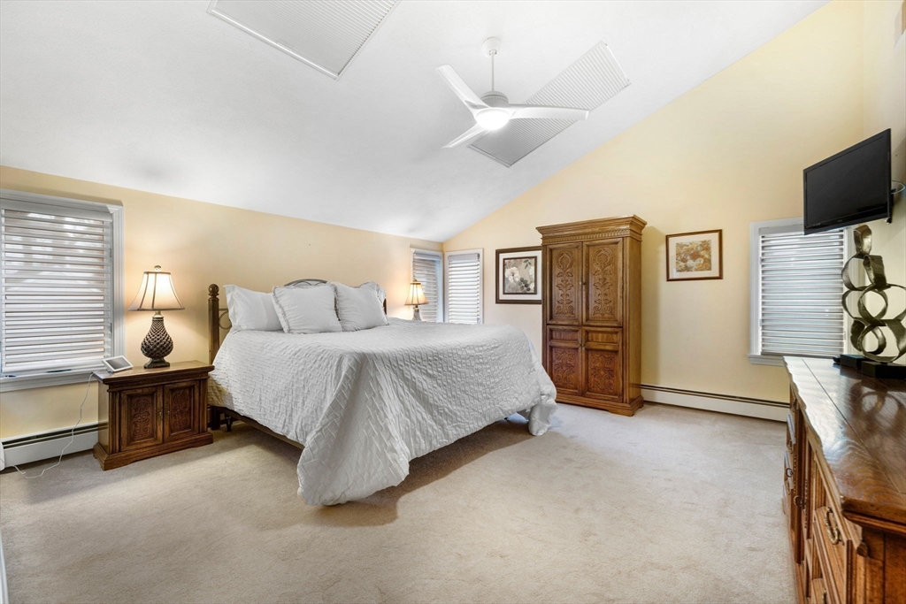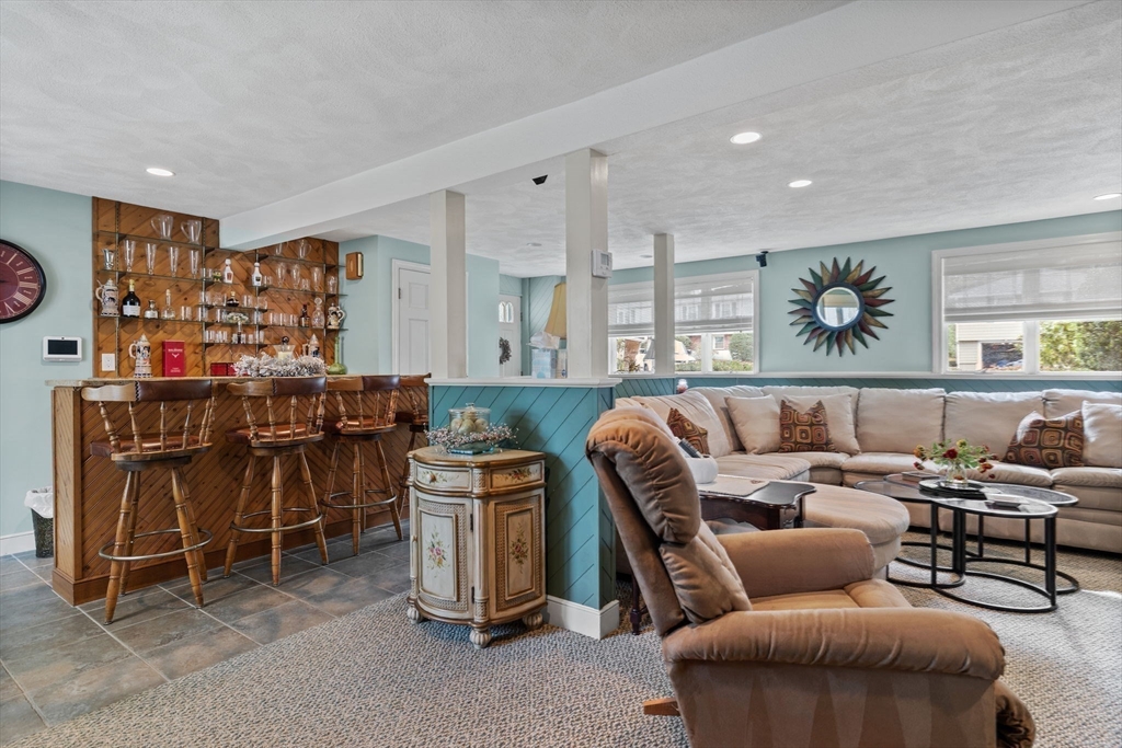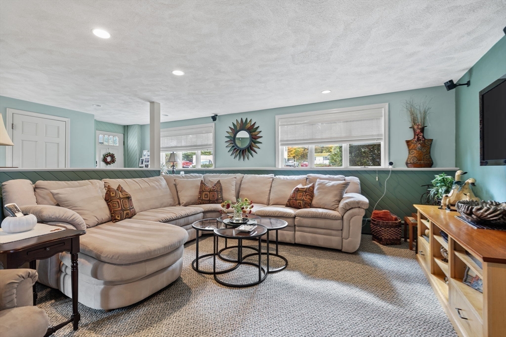 Desirable Bear Hill Country Club Location! Pristine condition home with additions and updates throughout. The sun-filled Cathedral Ceiling Living Room with granite gas fireplace and shiplap accents is warm and inviting. The bright Cathedral Kitchen with skylights features stunning light cabinetry, granite counters, and top-of-the-line stainless steel appliances including a Viking 5-burner stove, wall ovens, and Sub-Zero refrigerator — a true cook’s dream! Enjoy easy access to the composite deck, perfect for barbecues and entertaining. The open layout flows to the spacious Dining Room and Cathedral Family Room overlooking a beautifully manicured lot. Upstairs offers 4 generous Bedrooms, 2 updated Full Baths, and Laundry. The Primary Suite includes a walk-in closet, skylights, and a luxurious Bath with double quartz sinks and oversized tiled shower. The Family Room with Full Bath and private entrance offers ideal in-law potential. Central Air, hardwood floors, close major rtes!