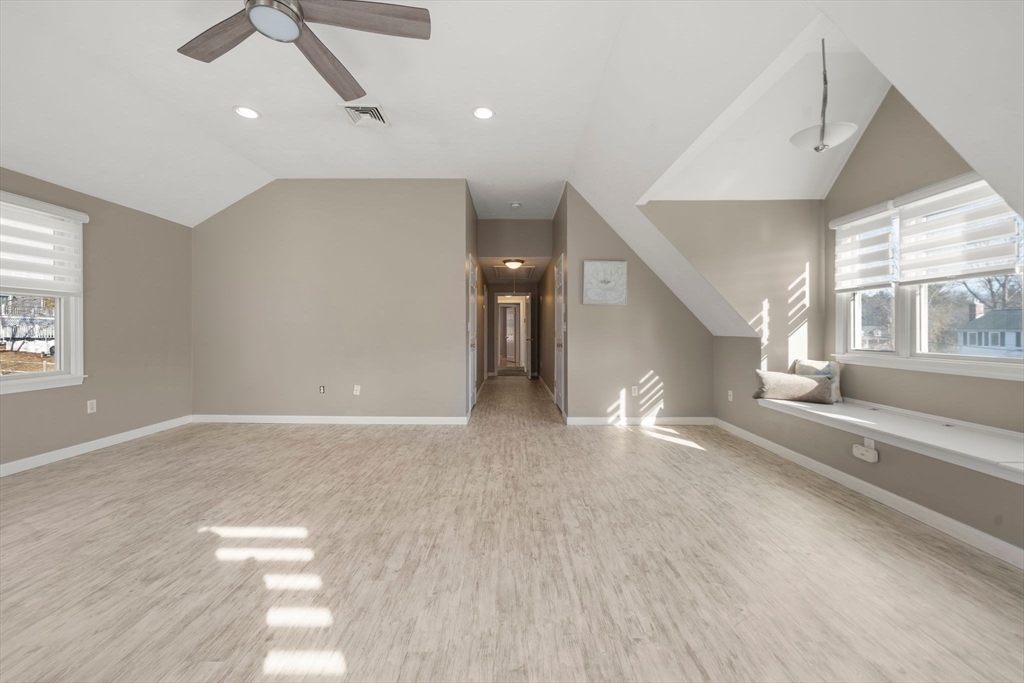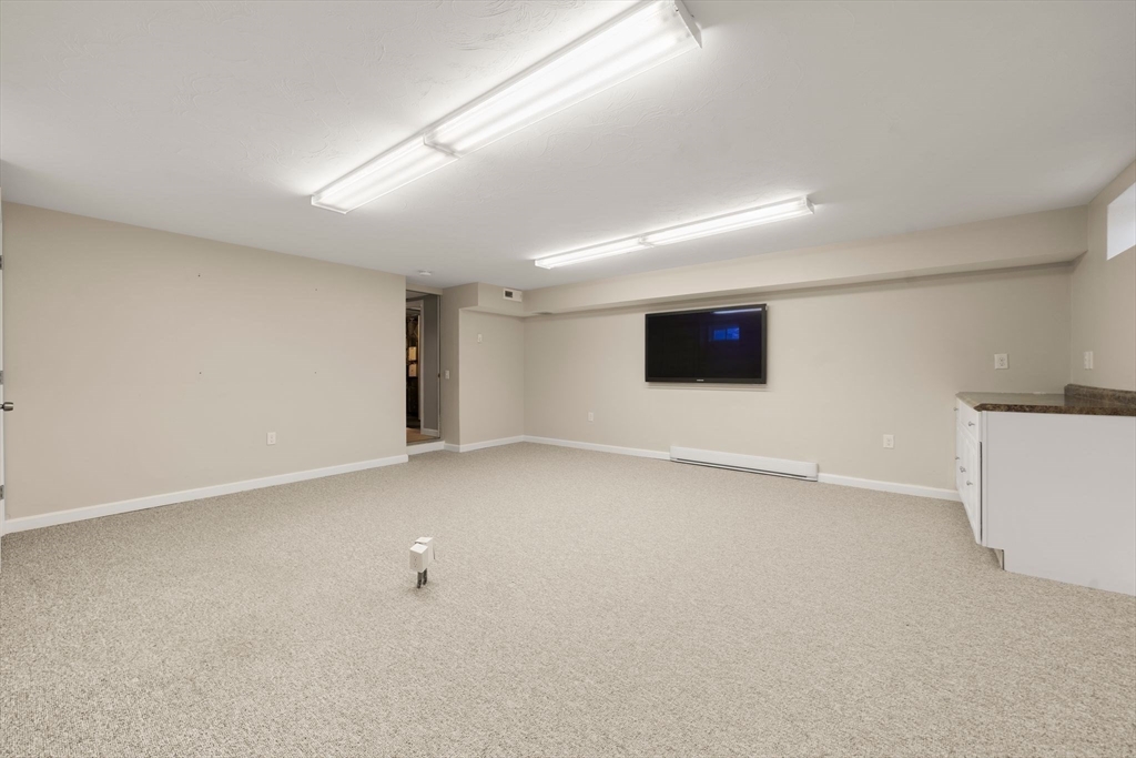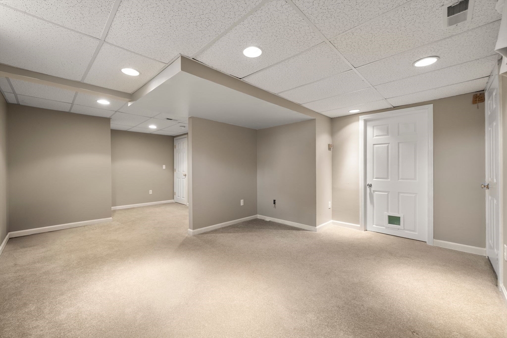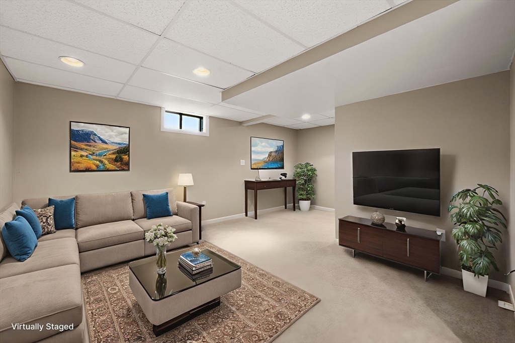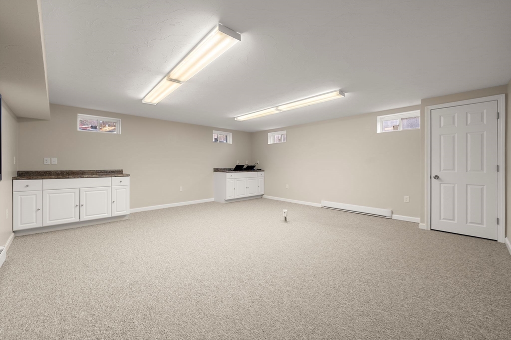 This beautifully maintained Colonial offers 4 bedrooms and 3 full baths in a quiet cul-de-sac neighborhood, with a clear visual line of sight to the bus stop at the end of the street. The updated kitchen features custom maple cabinetry, granite countertops, and a center island that opens seamlessly to the dining area. A spacious living room addition showcases built-in cabinetry, a cozy fireplace, soaring cathedral ceilings, and direct access to the outdoor patio—ideal for entertaining or relaxing. The expansive primary suite, located above the two-car garage, provides a private retreat with a full en-suite bath. The finished lower level offers exceptional versatility with space for a home gym, a large private office, abundant storage, and additional living area. The home is wired for a generator, and an EV charger in the two-car garage adds modern convenience. Minutes to the commuter rail and Routes 24, 104, and 495. New four-bedroom septic system being installed.