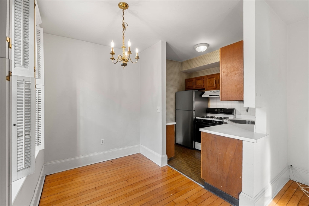 Amazing opportunity in a prime location! This property is ready for immediate move in. Great investment opportunity to renovate this unit to it's maximum potential. This first-floor oversized two-bedroom condo is situated in a beautiful brownstone building within walking distance to Boston University, the Green Line, multiple bus lines, and Coolidge Corner. Popular restaurants, bars, cafes, and retail are all right in the neighborhood. The comfortable and functional sun-filled layout provides ample living space including 2 sizable bedrooms, a bathroom, a living room, and a dining area off the kitchen. There is a balcony off one of the bedrooms. Additional features include high ceilings, hardwood floors, building laundry, and private basement storage.