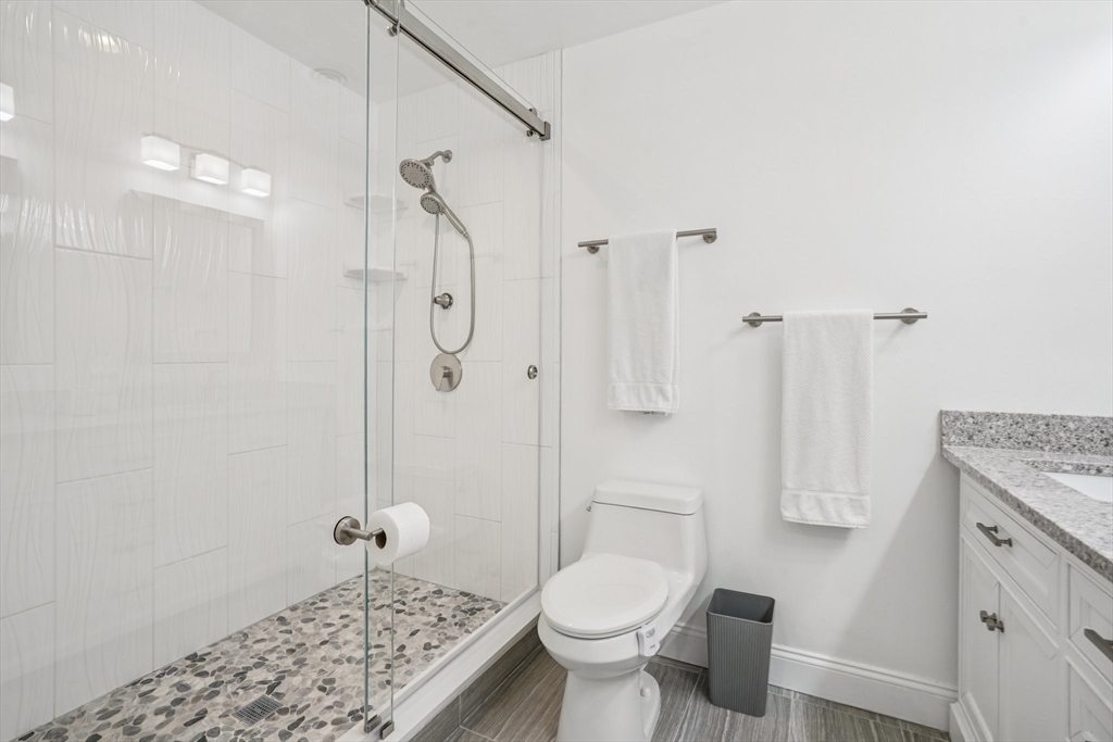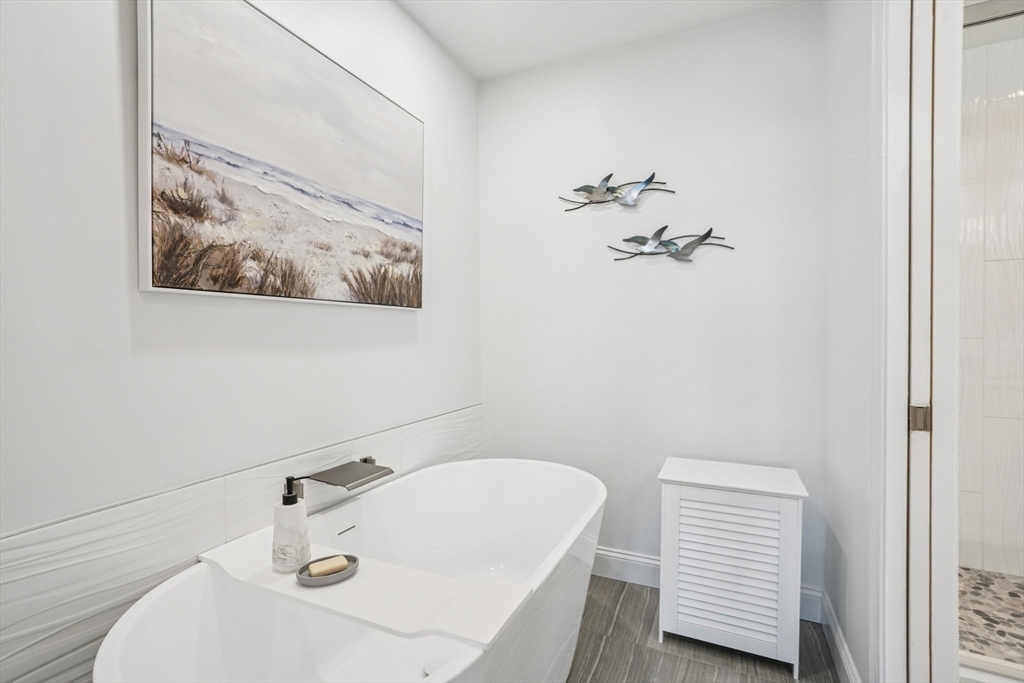 Enjoy breathtaking views from this beautifully renovated home featuring a spacious open floor plan—perfect for both entertaining & everyday living.The chef’s kitchen offers granite countertops, a large center island, gas cooktop, & double ovens, flowing seamlessly into the main living spaces. A convenient1st floor office provides the ideal work-from-home setup.The living room showcases stunning views with its high ceilings, gas fireplace, & a wall of windows with a slider leading out to the deck. The current owners use the formal dining room as a comfortable family room, creating an open, flexible layout that takes full advantage of the views. Upstairs, the large primary suite features abundant closet space, incredible views, & sliders opening onto the deck. The renovated primary bath, complete with double sinks, a soaking tub, & a walk-in shower. A spacious guest bedroom, renovated full bath, & separate laundry room complete the 2nd floor. 2 car garage. Steps to the beach!