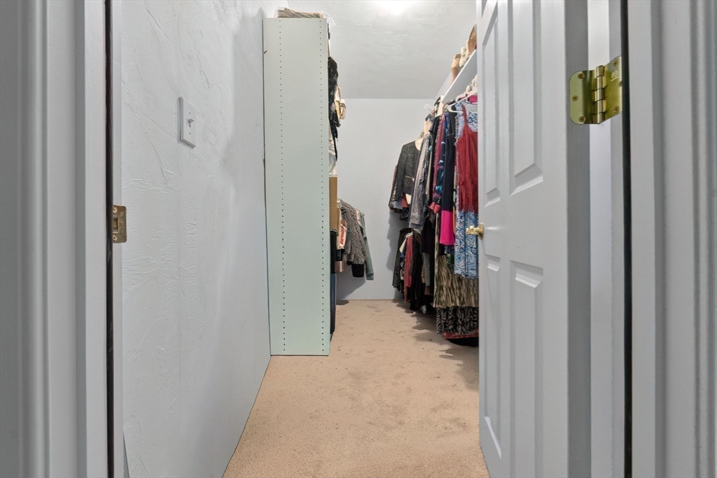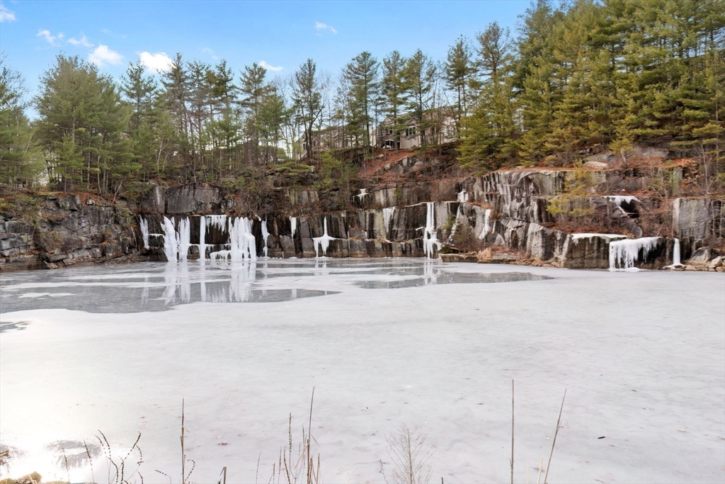 Welcome to Westford's Village at Stone Ridge 55+ community with beautifully landscaped grounds that include wooded walking trails on site! This bright townhouse has desirable 9' ceilings and oversized windows. The sunny eat-in kitchen includes updated navy cabinets, quartz countertops, recessed lighting, and black stainless steel appliances. The updated 3 bathrooms all have gleaming tile floors. The living room has a decorative wall, a cozy gas fireplace, and sliding glass doors to the composite deck overlooking trees and lush landscaping. The large main bedroom has a private full bath and large closet. The 2nd bedroom is upstairs with another full bath, and walk-in closet. A large unfinished bonus room is upstairs that could be finished and used as an office, guest room or leave unfinished for storage. The basement has 1043 sq ft of open area! The clubhouse has a fitness center, social activities, kitchen, library, and meeting rooms. Great place to meet new friends!