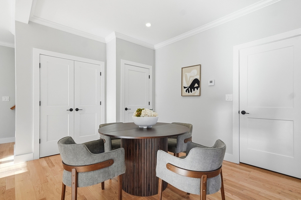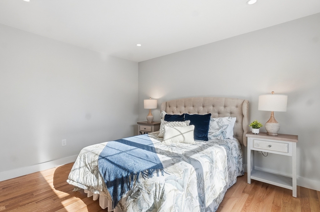 Brand-new townhouse in the heart of Stoneham! This beautifully crafted 4-bed, 2.5-bath home showcases high-end fixtures & finishes throughout & a thoughtfully designed open floor plan complete w/ hardwood floors. The sun-filled living room features a sleek electric fireplace & flows seamlessly into the stunning kitchen w/ upgraded cabinetry, quartz countertops, center island, & gas cooking, plus a dedicated dining area. A convenient 1/2 bath completes the 1st floor. Upstairs you’ll find 4 spacious, sunny bedrooms w/ ample closet space, including a true primary retreat w/ a private en-suite bath & walk-in closet w/ custom built-ins. An additional full bath and second-floor laundry add everyday convenience. The finished basement offers even MORE flexible living space, perfect for a family room, home office, or gym. Enjoy two garage parking spaces, a private backyard, & a deck overlooking the yard. Ideally located near major routes, shops, & dining. This home truly has it all!