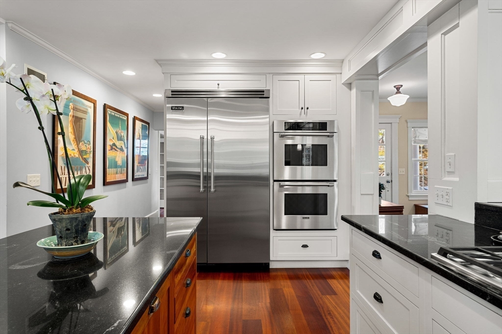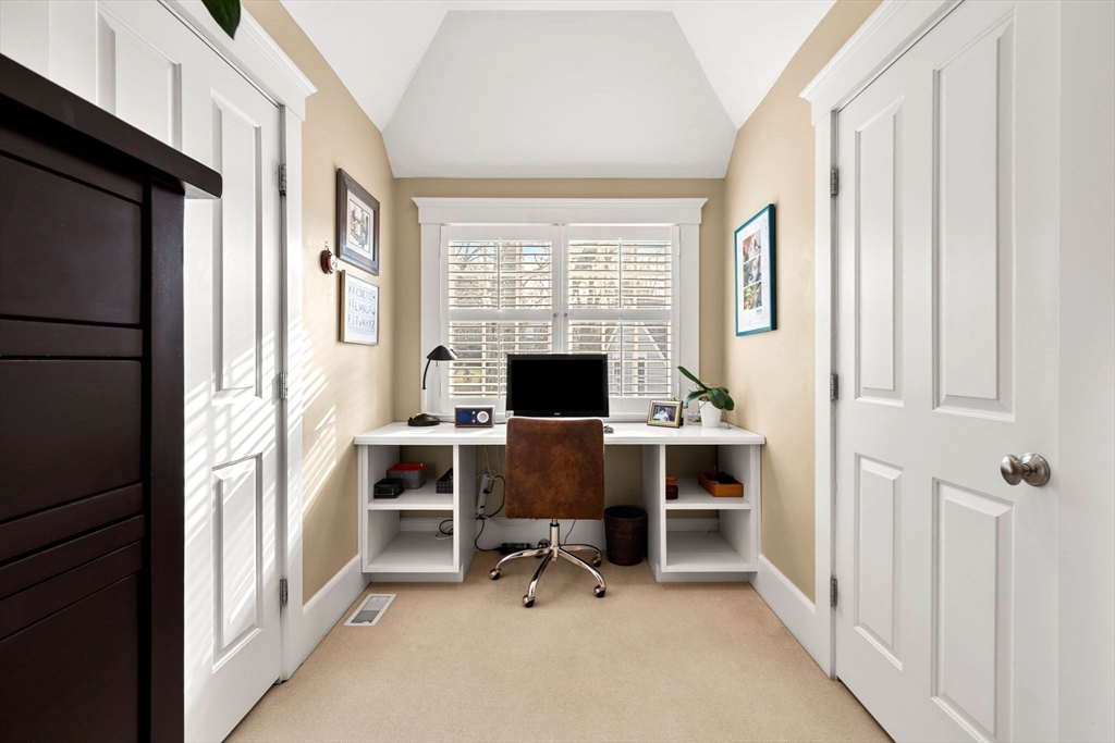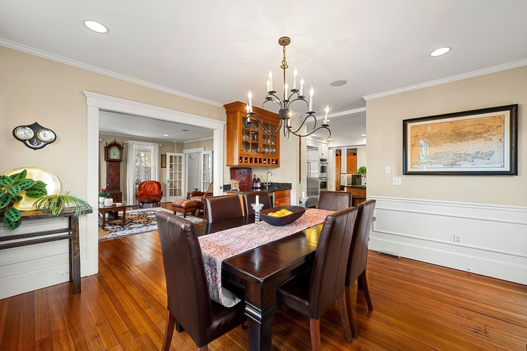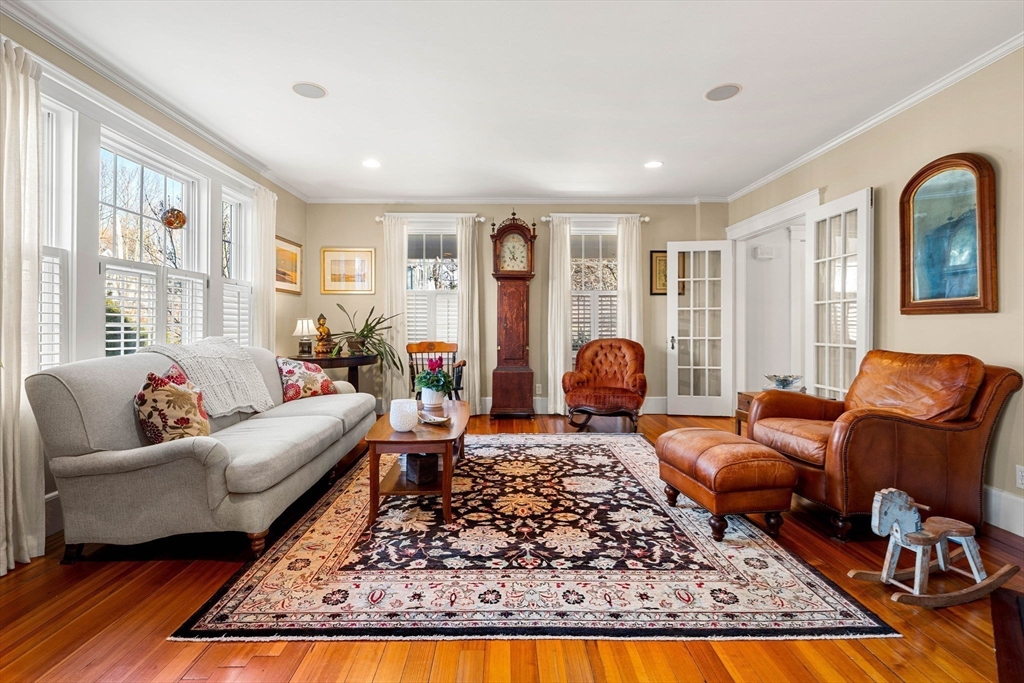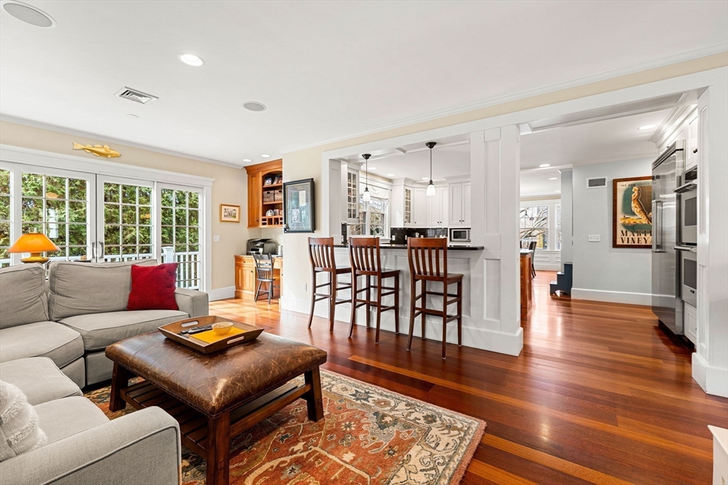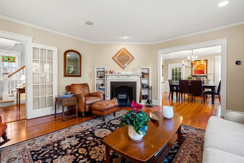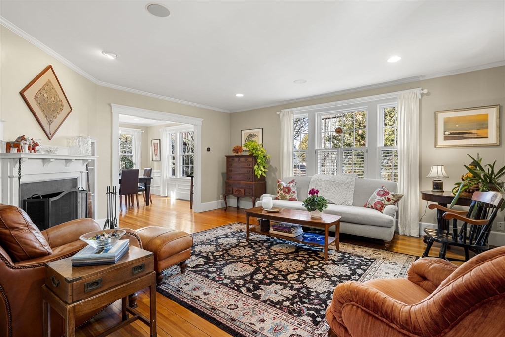 This is an exceptional home in the heart of one of Marblehead’s most sought-after neighborhoods. The house offers a generous 4-bedrooms, 2.5-baths, an attached garage, and is moments from Devereux beach, Seaside Park, schools, and downtown Marblehead’s quaint shops and restaurants. The stainless-steel kitchen opens to a comfortable family room with built-in office space and sliders to the back deck, plus a mudroom with custom cabinetry to welcome guests and store belongings. The formal dining room with wet bar overlooks a peaceful side yard and leads into the living room with a fireplace. The second floor features a large primary suite with high ceilings, walk-in closets, an ensuite bath with spa tub, bidet seat, and a large shower. Three well-appointed bedrooms and a double-sink full bath complete this level. A partially finished basement offers flexible space and ample storage. Outside, relax on the front porch, back deck, or enjoy the outdoor shower, perfect after a day at the beach