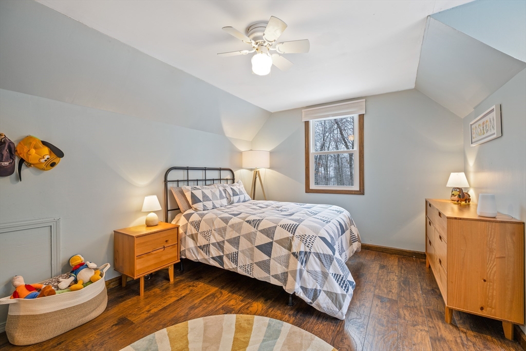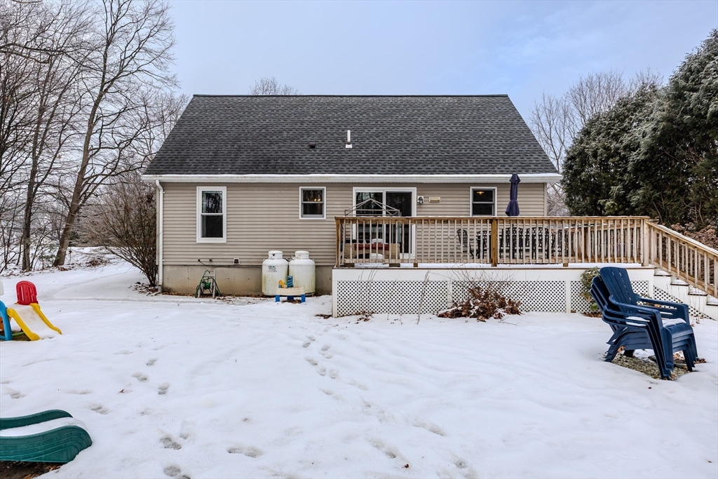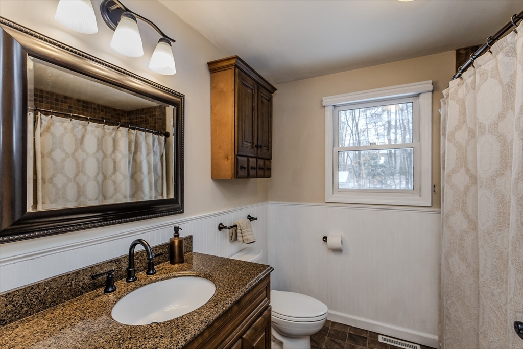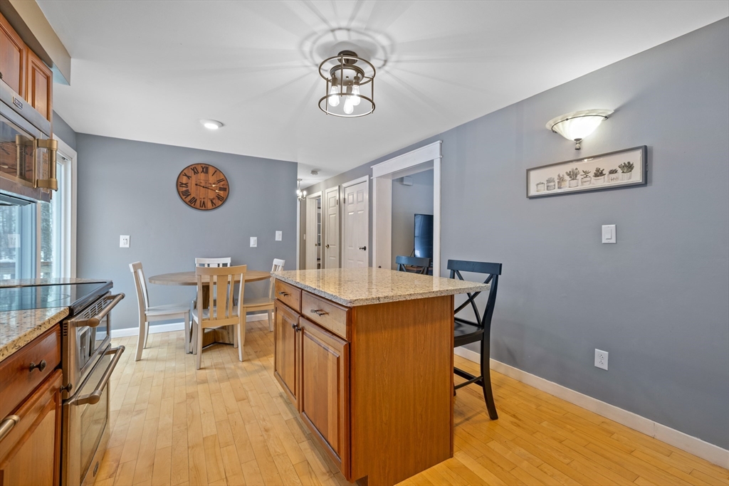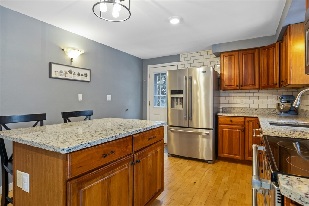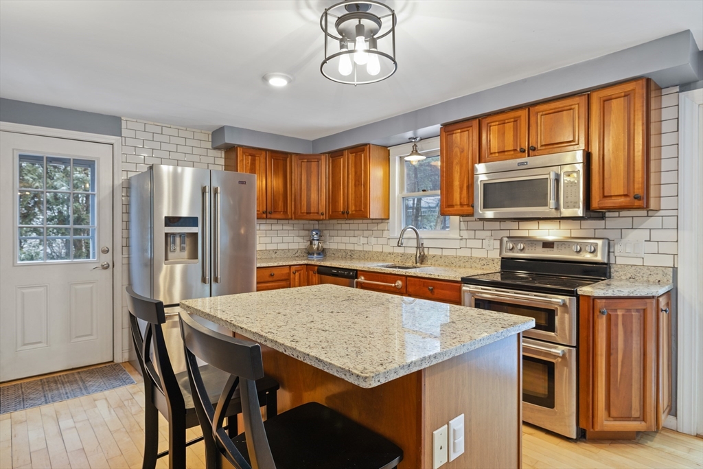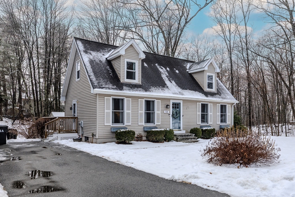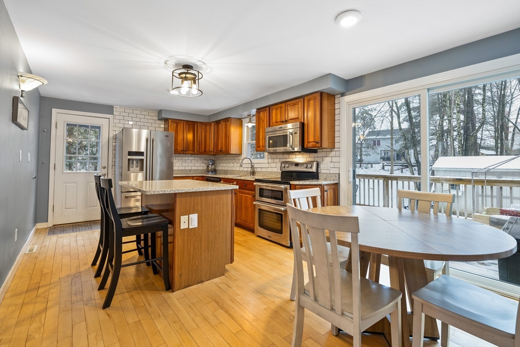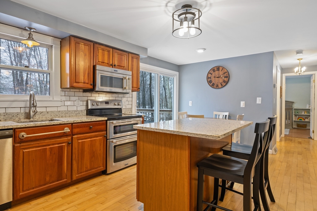 Step in to 58 Dana Hill & prepared to be WOWed by the stunning kitchen, anchored by beautiful cherry cabinets, a large island with seating, SS appliances & tasteful granite countertops with an eat-in area that leads to the newer deck overlooking the yard. Continue on to find 2 bedrooms, including a primary bedroom with double closets. The full bath features tile floors, beadboard accents and an upgraded vanity. The bright and airy living room leads you to the 2nd floor where you'll find 2 more bedrooms, both w/ engineered hardwood floors & ample storage. The bonus room in the basement adds flexibility! This home is situated on a .37 acre flat lot with a shed in the desirable Dana Woods neighborhood, ideally located next to the almost 2 acre neighborhood common area with lots of room for walking, biking & exploring! Many updates including 5 new windows, granite countertops, hot water tank (2021), washer/dryer (2020), and deck stairs.