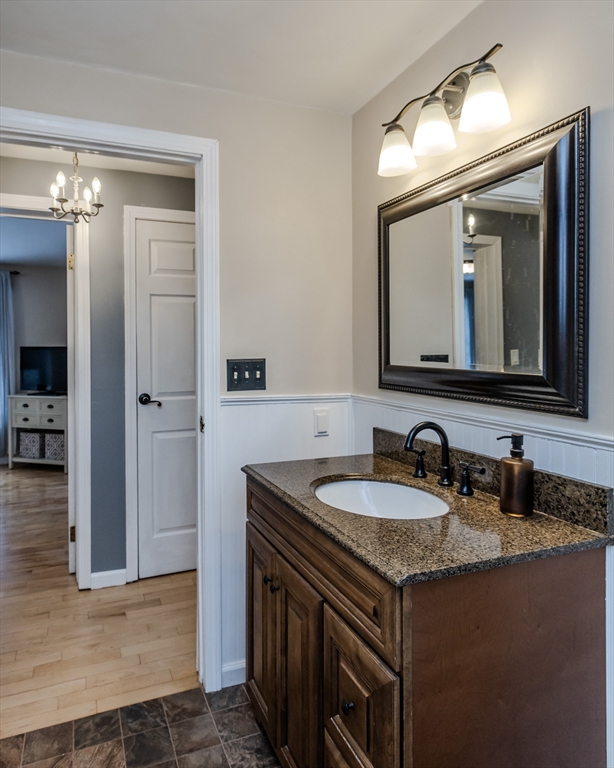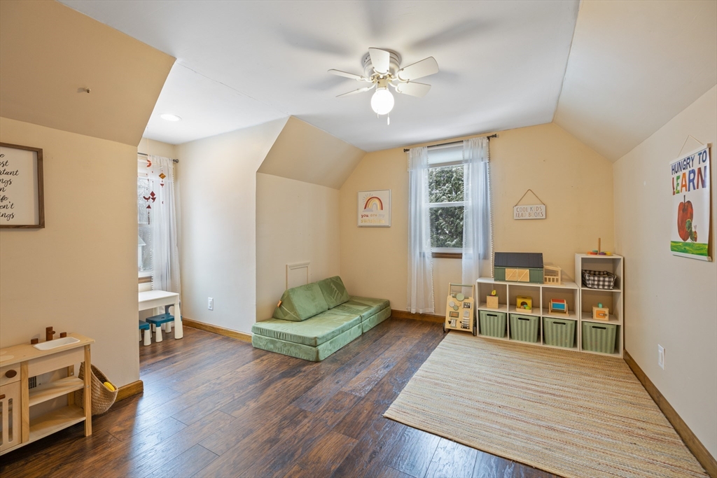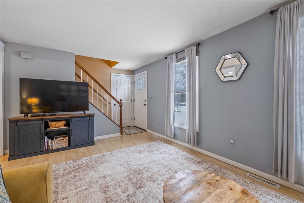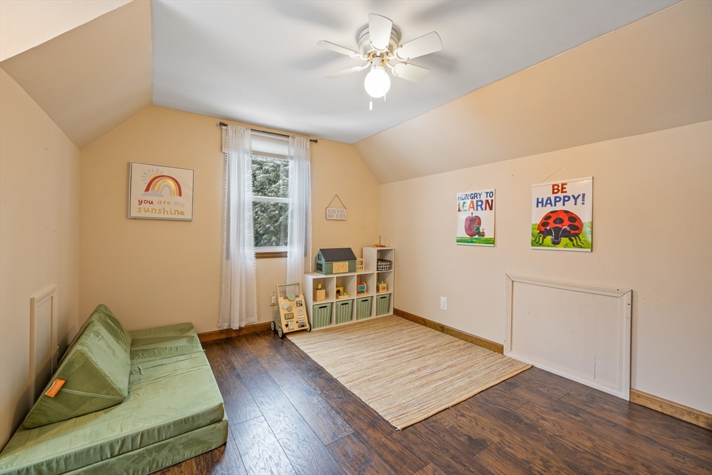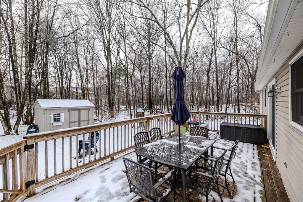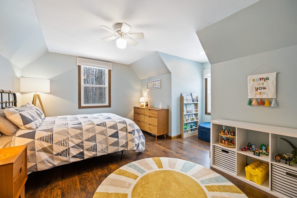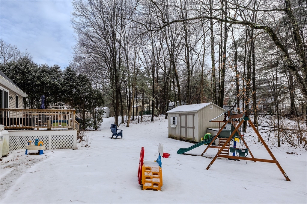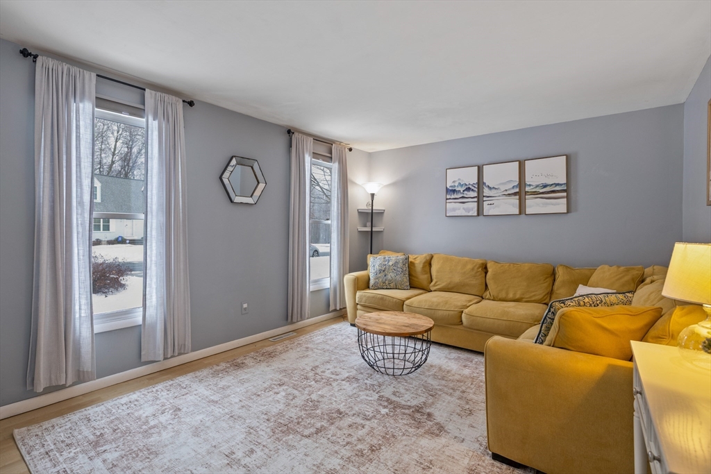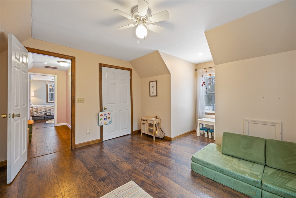 Step in to 58 Dana Hill & prepared to be WOWed by the stunning kitchen, anchored by beautiful cherry cabinets, a large island with seating, SS appliances & tasteful granite countertops with an eat-in area that leads to the newer deck overlooking the yard. Continue on to find 2 bedrooms, including a primary bedroom with double closets. The full bath features tile floors, beadboard accents and an upgraded vanity. The bright and airy living room leads you to the 2nd floor where you'll find 2 more bedrooms, both w/ engineered hardwood floors & ample storage. The bonus room in the basement adds flexibility! This home is situated on a .37 acre flat lot with a shed in the desirable Dana Woods neighborhood, ideally located next to the almost 2 acre neighborhood common area with lots of room for walking, biking & exploring! Many updates including 5 new windows, granite countertops, hot water tank (2021), washer/dryer (2020), and deck stairs.