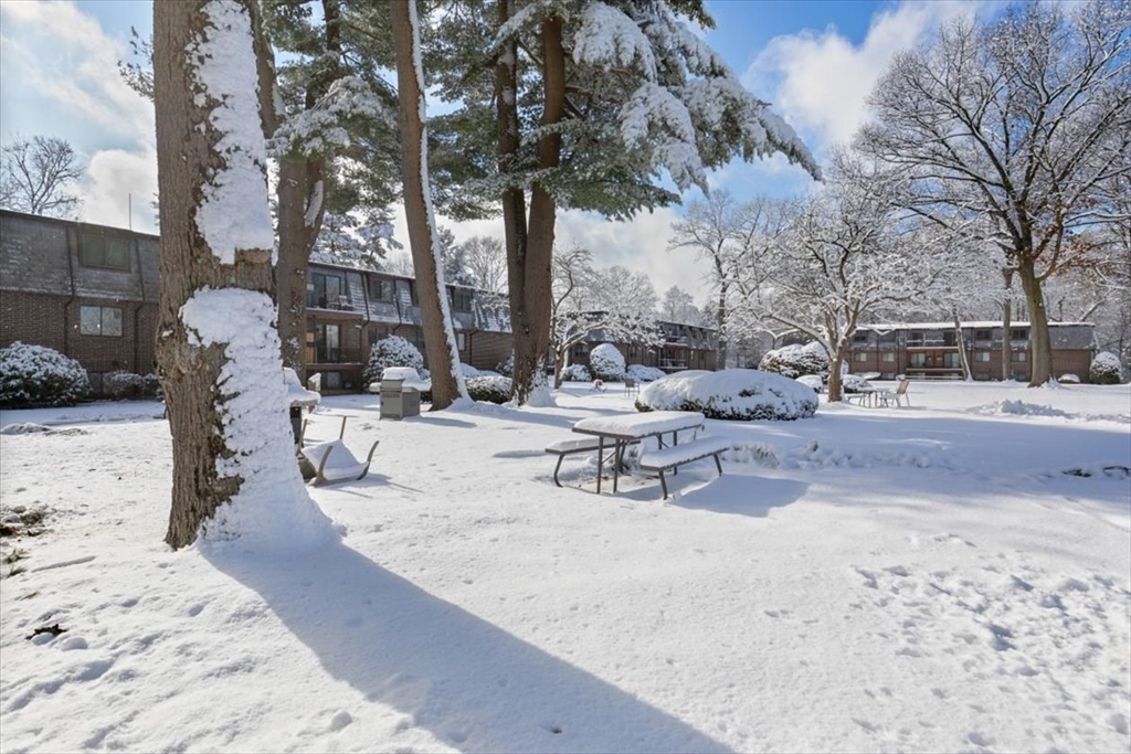 Pristine top-floor unit offering 975 sq. ft. of living space—the largest unit in Park Colony Condominium. Heat and hot water included in the HOA fee. This two-bedroom, one-bath condo features an open-concept layout with abundant natural light and tranquil views. Large living room with access to a private 9.10 x 4.8 balcony. Generous closet space in both bedrooms plus two large linen closets provide excellent storage. Located in a sought-after, pet-friendly community, ample parking, and an outdoor pool. Residents also enjoy a spacious common area with picnic tables along with gas connected grills offering continuous fuel. The distinctive mansard roof enhances the property’s curb appeal. Conveniently close to local amenities, parks, and transportation. A great opportunity for comfortable and convenient living, extra on-site storage for each unit is available.