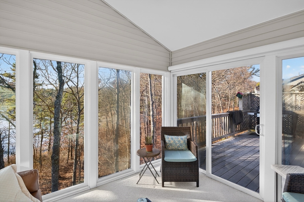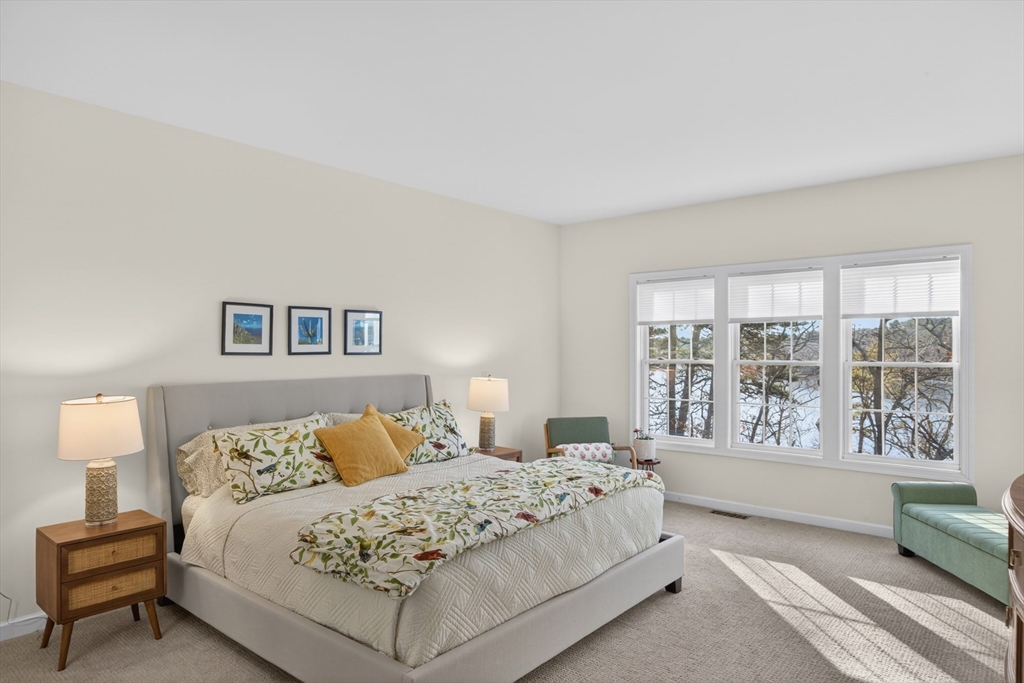 Beautiful, updated, and grand move-in-ready two-story Vanderbilt overlooking Great Island Pond in Great Island at The Pinehills. This home has a formal living room and dining room, study with French doors, great room with vaulted ceiling, gas fireplace, and INCREDIBLE pond views, in addition to gourmet kitchen with a breakfast nook and slider leading to 3 season porch and trex deck overlooking the backyard and pond. The first floor also has a primary suite, plus an additional bedroom and full bath. The second level has a spacious loft with bedroom, full bath and plenty of closets! There is also a spacious unfinished walkout lower level that leads to the backyard/pond. This home is steps away from the Great Island Overlook Clubhouse with indoor pool, jetted hot tub, gym, billiards, kitchen, ballroom, and more. Outside bocce, tennis, and pickleball courts and access to Great Island Pond. 55+. Do not miss this beautiful home!