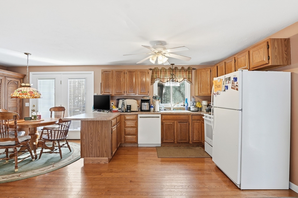 Welcome home to this charming 3-bed, 1-bath Ranch, ideally situated at the end of a cul-de-sac in desirable Rutland. Enter inside to a sun-filled living room featuring HW floors & a bow window that flows seamlessly into the kitchen, complete w/ a breakfast bar, ample cabinet space, & dining area. Enjoy easy access to the back deck which is perfect for entertaining or relaxing outdoors. Down the hall, you’ll find 3 bedrooms, each w/ closets, along w/ an updated full bathroom offering a tub/shower combo & linen closet. The lower level provides even more living space w/ a finished recreation room - a versatile space ready for your ideas. Completing this level is laundry on the unfinished side! Outside, unwind on the wrap-around deck overlooking the backyard, w/ a storage shed for all your tools & equipment. The backyard also offers exceptional privacy! Additional upgrades within the past 7yrs include a new roof, gutters, siding, & a replaced heating system. This home is not to be missed!