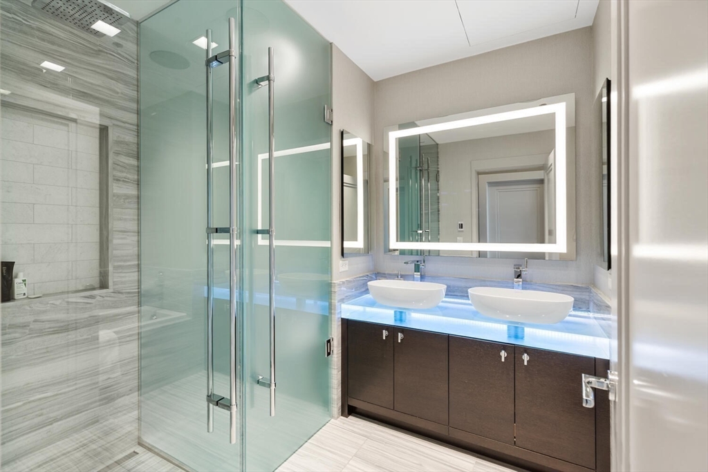 High above the city on the 38th floor of the Four Seasons Private Residences at One Dalton, this exceptional 3-bedroom, 3.5-bath home commands sweeping, front-facing Charles River views. Spanning over 3,200 square feet, this home was meticulously customized by Sanborn Custom Builders and showcases floor-to-ceiling windows capturing dramatic panoramas of Back Bay, Cambridge, and the most unforgettable sunsets. Refined interiors feature a striking custom fireplace with a marble-clad feature wall, designer lighting, and elegant porcelain flooring throughout. Enjoy private elevator access with no shared foyer leading to expansive living and entertaining spaces that flow seamlessly into a bespoke gourmet kitchen with an additional family room. Residents enjoy legendary Four Seasons white-glove services, access to the exclusive 50/50 Club, a 65-foot heated lap pool, spa, state-of-the-art fitness center, golf simulator, private theatre, pet wash, and dining at the renowned Zuma restaurant.