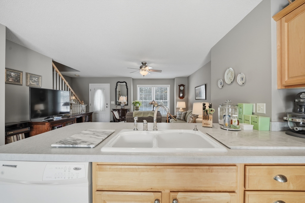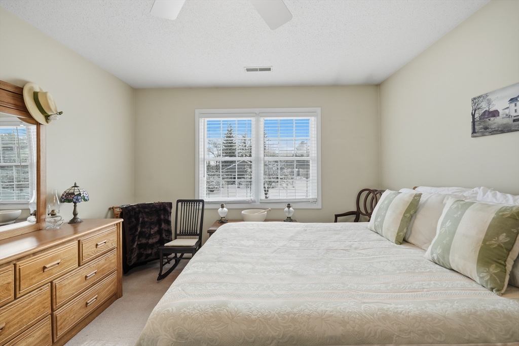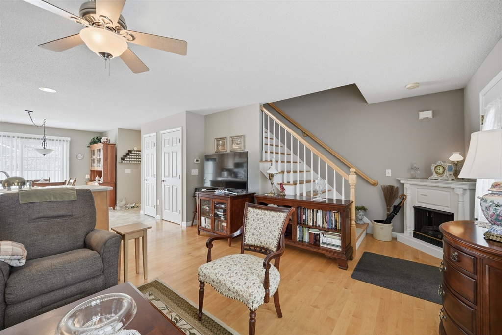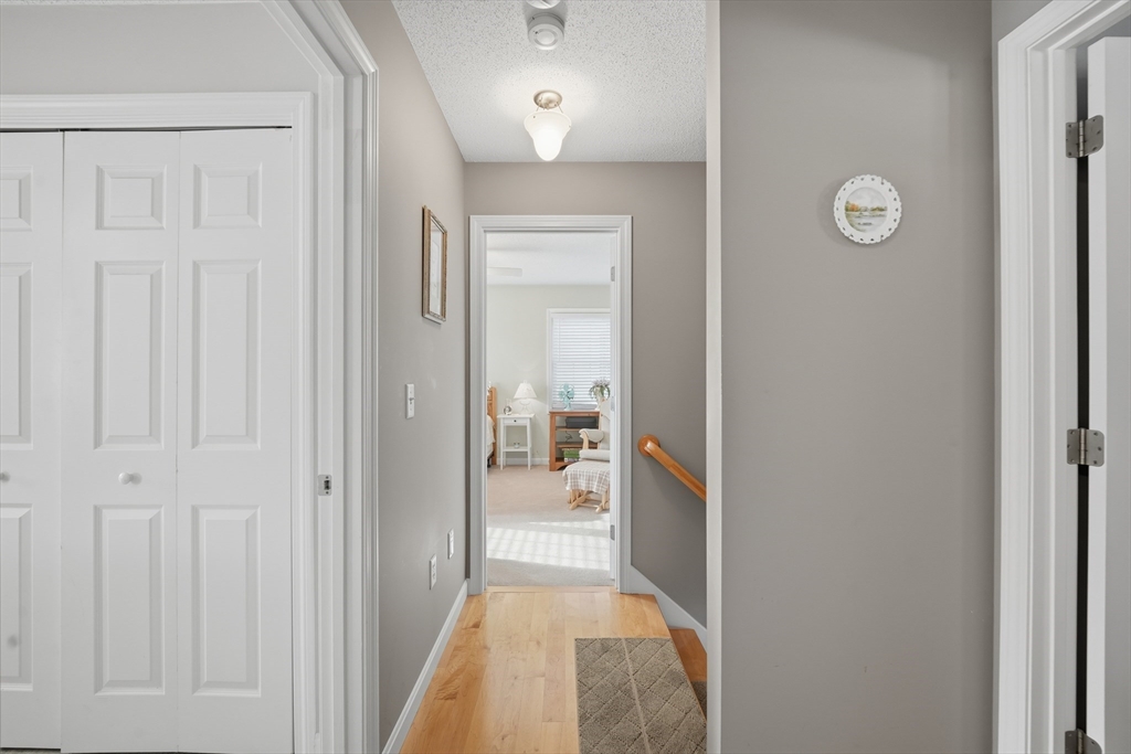 Welcome to Olde Plains Hollow in South Hadley. This very unique and private complex of 10 units features duplex-style townhouse condominiums with attached one-car garages, full basements and private back patios. This pristine one-owner unit boasts a rare 3-bedroom design. With over 1400 sqft of living area, each room throughout is overly spacious and contains generous closets and storage. The main level features an open-concept between the living and kitchen areas and floods with natural light coming through oversized windows and a nicely defined maple cabinetry kitchen layout. Additional amenities include LR maple hardwood flooring, kitchen recessed lighting, pantry closet, and 2nd floor laundry. Extra wide stairway to the 2nd floor could easily accomodate handicap modications. Recent updates include a newer central air unit (approx 5 yrs) and new leased HW heater. Pride of ownership is evident throughout this meticulous home - don't miss out, book your private showing today!